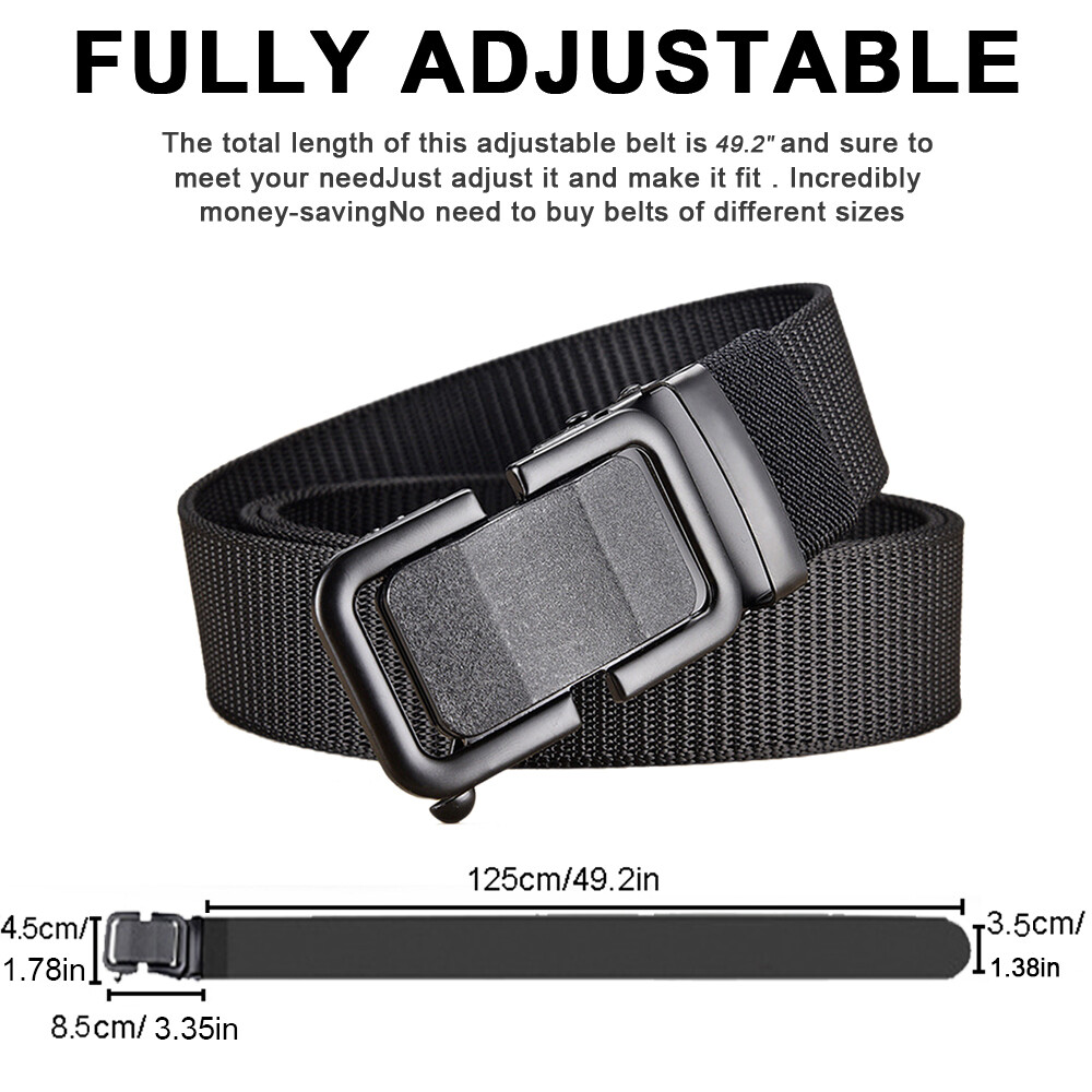 Meinuousa Your Best Online Business Partner Men Canvas Nylon Belt Automatic Buckle Belt Quick Release Casual Jeans Waistband Feature - Hard metal automatic buckle, soft real nylon - 3mm thick, not easy to deform, anti-oxidation, wear-resistant and durable - Length up to 125cm, adjustable. - Quick release, will not open accidentally.. - Non-slip and wear-resistant. - Long-lasting elasticity function. Longer service life than traditional elastic waistbands. - It is very comfortable when you bend over or squat down. - Suitable for outdoor sports and work such as hiking, camping, hunting, military training, commuting, fishing, expedition, cycling, logging, etc. Product information - Name: Tactical Belt - Material: Nylon + Metal -Buckle width: 4.55cm -Buckle length: 8.5cm -Belt width: 3.4cm -Blet length: 125cm - Color: black, -B elt size: The length of this belt up to 125cm, adjustable. Package Including: 1 piece belt only Payment Shipping Returns Contact Us About US - We accept the payment through :Credit, debit, and gift cards, Apple Pay, Google Pay, PayPal, and PayPal Credit. - Payment must be fulfilled within 4 days after the end of auction. - Please make sure your ebay address is correct. Or not, please correct it before payment. - If you are a big customer, Please contact with us about the item's PRICE and SHIPPING. - Your feedback & suggestion is deeply appreciated, thanks. 1. Please make sure your address in ebay is correct. 2. We will only follow your address listed in the ebay orders for the shipment. 1. We can exchange the item within 30 days after you received it if it is defective. 2. Returned item must have all original packaging and accessories. 3. Buyer are responsible for the returning shipping costs. 1. We greatly appreciate your POSITIVE feedback. 2. Negative or Neutral feedback does not resolve any underlying issues that you may be experiencing as a buyer. 3. Any question or unsatisfaction please contact us with ebay message, we will sincerely solve for you. Feedback is very important to us, if you are satisfied with us, please leave us 5 star positive feedback to us. If you h have any problem, please contact us first BEFORE you give us neutral or negative feedback, so we can try our best to help you solve your problem. All rights reserved.