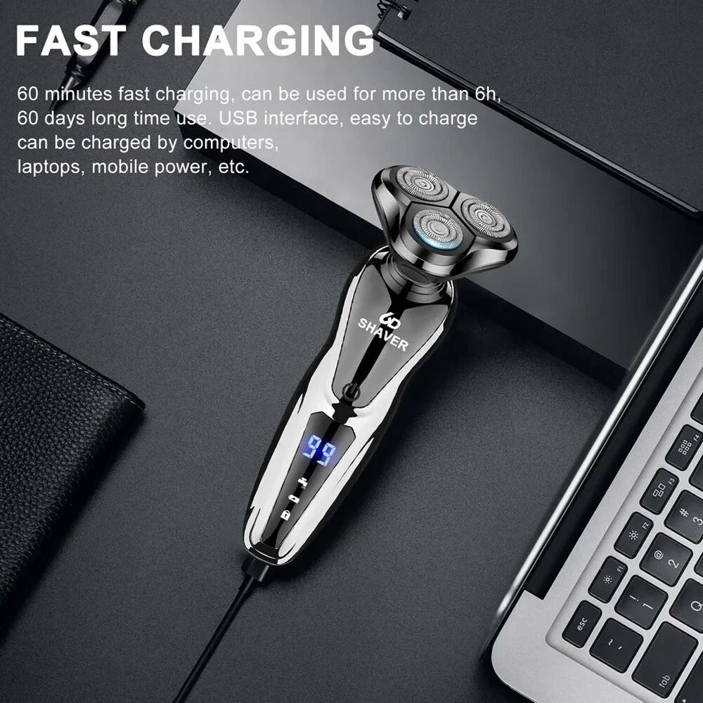 Men Wet/Dry Electric Shaver Trimmer Rotary Razor Beard Shaving USB Rechargeable 100% brand new and high-quality made. 360° all angle shaving with floating face system which seamlessly fit various face shapes. LED digital display status visible at a glance, accurate display of power to avoid insufficient power. Smooth body ergonomics design based on American male hand curve, allows one-handed operation. Suitable for both wet and dry use, the whole body is washable, comes with 1 head. <> 6-Direction flex heads combined with a blade System for besting shaving result. Package Includes: 1x Electric Razor 1x Cleaning Brush 1x Charging Cable 1x Head
