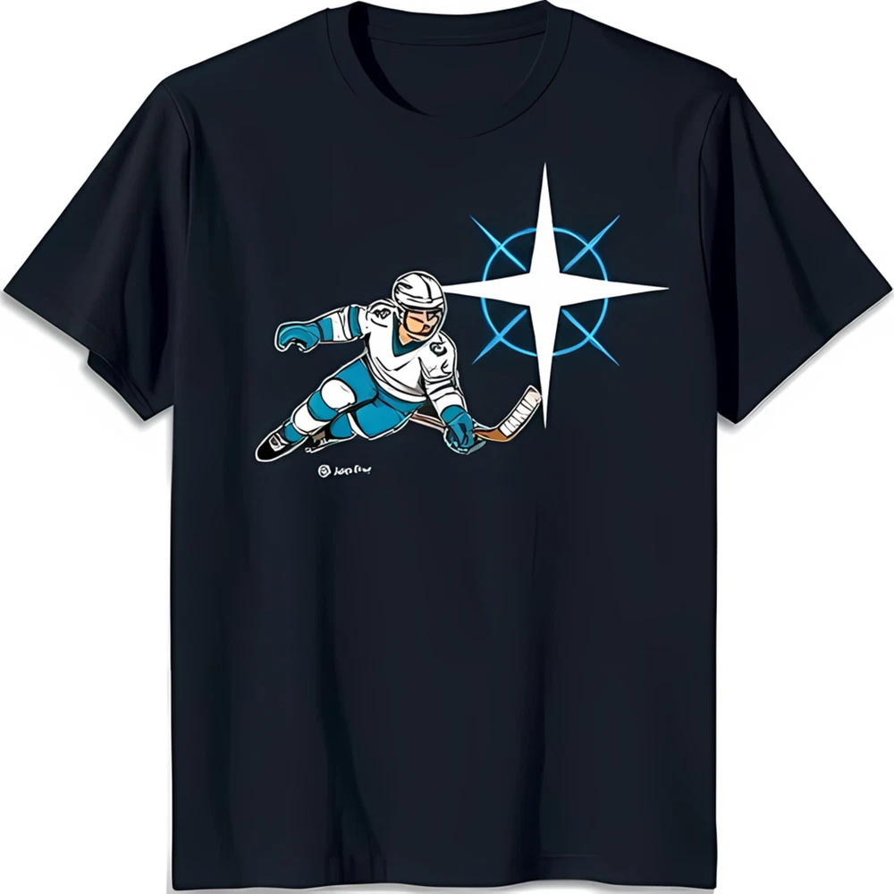 Men s Black T-Shirt with Player Graphic & Star Design Cool Sportswear