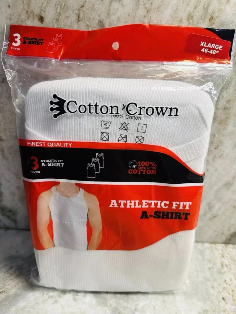 Elevate your athletic wear with this Men's 3ct Athletic Fit A-Shirt in White Crown. Crafted from 100% cotton, this sleeveless tee features a crew neck for a comfortable fit. The adjustable feature allows for a customizable fit suitable for any season - winter, summer, fall, or spring. This T-shirt is machine washable for easy care and maintenance. The white color and simple pattern make it a versatile addition to any wardrobe. Perfect for workouts or casual wear, this shirt is a must-have for any style-conscious man.
