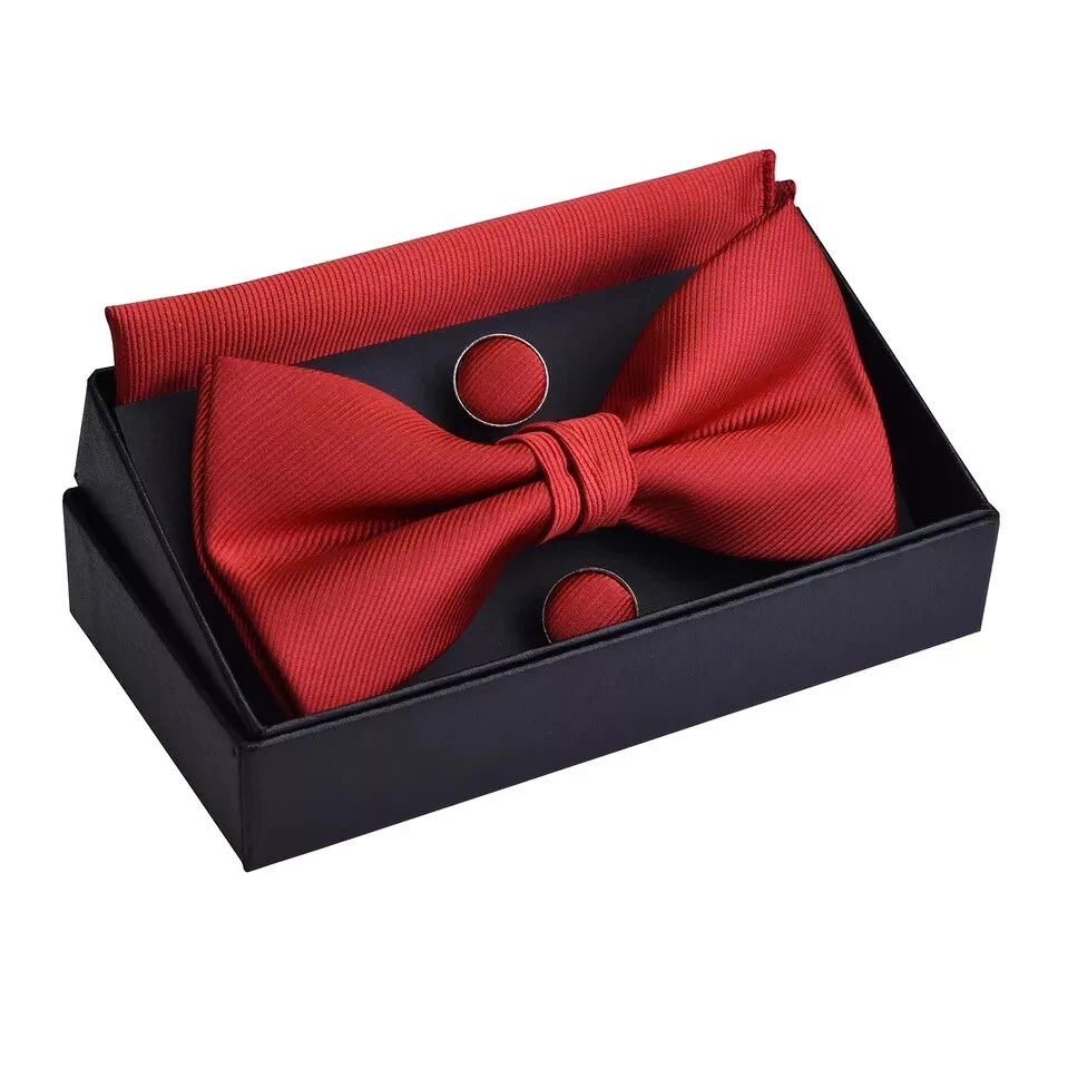100% Money Back Guarantee if you are not satisfied with your purchase! ___________________ Description: Mens Solid Color Jacquard Woven Adjustable Pre-tied Bow Tie and Pocket Square Cufflink Set with Gift Box Package include:bow tie , Pocket Square and cufflinks Adjustable pre-tied bowtie size. 4.72 inches long(12cm long);2.75 inches width (7cm width);Handkerchife size is 9.84*9.84 inches (25*25cm), suit for the most of adult High quality and soft texture, it is comfortable to wear and to touch. Note:it's a pre-tied adjustable bow tie, not self tie bow tie ________________________ 100% Money Back Guarantee: We offer 30 Day Money Back Guarantee from the day you purchased if you’re not satisfied with your product. If you have any questions about our products, please contact us as soon as possible. Customer satisfaction is our absolute priority. Shipping: We are always working hard to ensure your package arrives as soon as possible. Please understand that some factors like weather, high postal traffic, and the performance of shipping companies are outside of our control. We offer free shipping to the lower 48 states and ship within 3 business days of payment, usually sooner. We do not accept P.O. Boxes. Please provide a physical address. You will be notified via eBay messages as soon as your items ship. Delivery: We will ship out the item in 2-3 working day after receiving the payment. Usually the delivery takes 2-5 business days. If you don't receive the items after 10 days, please feel free to contact us. You will get a replacement or a full refund. Please DO NOT open a return request or leave negative feedback without asking for help . Returns (Get Free Return Label): We offer a 30-Day Return Policy on defective/wrong items or items which you are not completely satisfied with. You have the option for a full-refund or an exchange of the item. No need to buy eBay return label. Contact us via eBay messages and get free return label. Returned items must be in all of the original packaging and include all of the original accessories or items that came with it. The item and package should be in original condition. Contact Us: Any queries or issues incurred, please feel free to contact us via eBay message, we will get back to you within 24 hours. Please DO NOT open a return request or leave negative feedback without asking for help. Feedback: Your feedback is very important to us. After you get your package and you are satisfied with our service, please leave us positive feedback. We are highly appreciated for your POSITIVE feedback and 5 stars. Enjoy shopping.