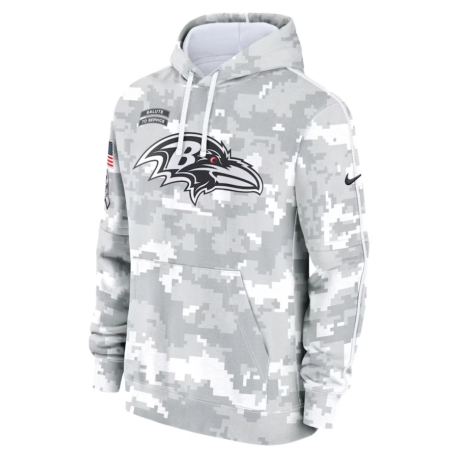 Men's Baltimore Ravens Arctic Camo 2024 Salute to Service Club Pullover Hoodie