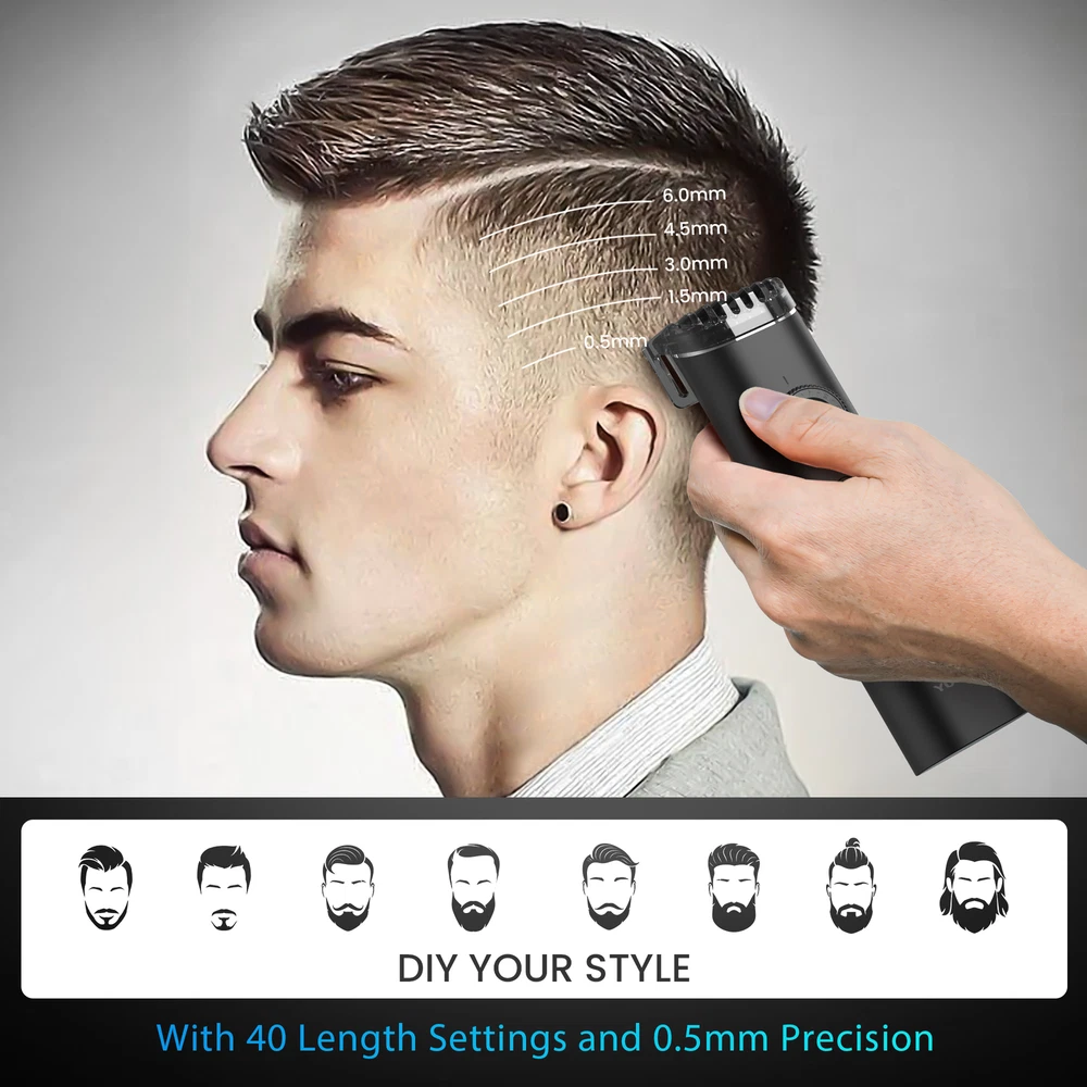 Product Description In modern families, haircuts, trimming, shaving are already synonymous with fashion. Before, haircuts need to go to barbershops. Nowadays, we not only go to barbershops for haircuts, but also will buy a family hair clipper. With the gradual improvement of living quality, we realize that haircutting at home is a healthy and fashionable way of life, also good for spending some qualified time with family and ourselves. And we give more importance to health than fashion. Beard trimmer, hair clippers, nose hair trimmer become one of the must-haves for many emerging home care appliances. Sejoy focused on Personal Healthcare devices, home-care devices and Mother and Baby care products as a Professional Manufacturer for 20 years. We are here to provide you a whole package for the family due to the needs for hair, which is not only a good buy when purchase, but saves a lot every time you use. We warmly invite you to be one of our beloved customer! About this item Premium Blades: Mens hair clippers designed for smooth, quick, and clipping performance on all types of hair with high quality long lasting self-sharpening premium stainless blades, The tip part adopts safe R outlineing obtuse angle design, the professional edgers clippers satisfy any styling needs,such as lining, sculpt contours, and dry shaving. Super Easy to Use: This hair trimmer and clipper comes with 0.5-20mm comb*1, 20-40mm comb*1, Nose& Ear hair trimmer head*1, Shaver Head*1, Bush*1, Oil (used before and after a haircut)*1, travel sack*1, charging cable*1. Ready to use once reveived. User friendly, makes life easier when you are trying to follow the grain. Rechargeable & long-last battery: This hair clipper is equipped with the international standard 18650 capacity lithium battery provides exceptionally long using time and strong power output. It can support 280 minutes use of a full charge. Also compared with other types of batteries, it takes less time to reach full charge. Takes 3 hours to fully recharge by usb cable. Precision Length Dial: For 40 length settings in 0.5 mm step sizes, provides an effortless trimming experience with only 2 combs. Low noise & IPX5: With noise≤68bB and Full body washable. No hassle during and after using. Warranty: We are decent and integrity company exsited for 20 years, quality is guaranteed. Any questions, we are alway here to assist. 0.5-40mm Limit Comb With only 2 limited combs and a knob, the length limit of hair cutting can be adjusted by lowering the hair clipper to a state where only a certain length of hair can be cut, which greatly reduces the operating threshold of the hair clipper. Low Noise Noise is what we care about. With high standard guaranteed by delicate structure and quality control, noise is at minimum level to suit for operating for kids and toddlers. Compact Design With compact design and replacable blades, and stylish pouch, it is easy to take anywhere.
