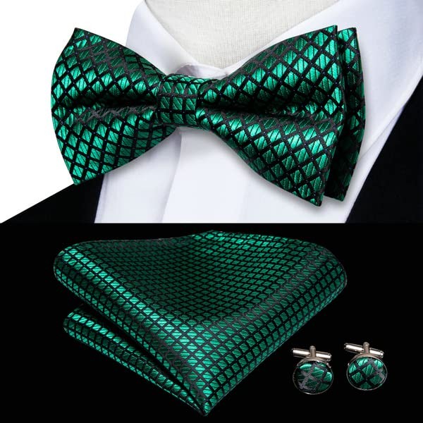 Bow Ties for Men Pre-Tied Pocket Square with Cufflinks Red Black Silver Plaid