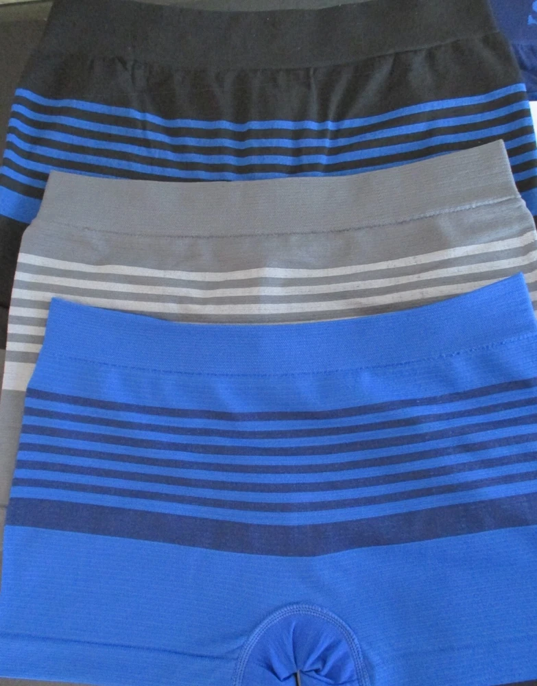 Mid-Rise Spandex/Polyester Mix Seamless Boxer Briefs. Are Sized in Asian Sizes - See Chart Below for US Sizing. (Note: These are Very VERY Stretchy! Easily 4" larger than stated if you prefer a tighter fit)