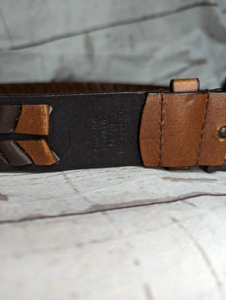Men's Brown Faux Leather Woven Arrow Belt - Adjustable - Measures Approximately 44.5" L including buckle Good Pre-owned Condition