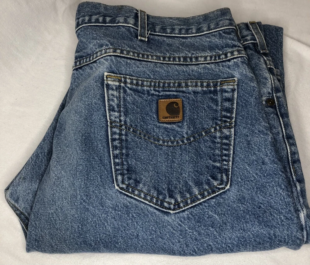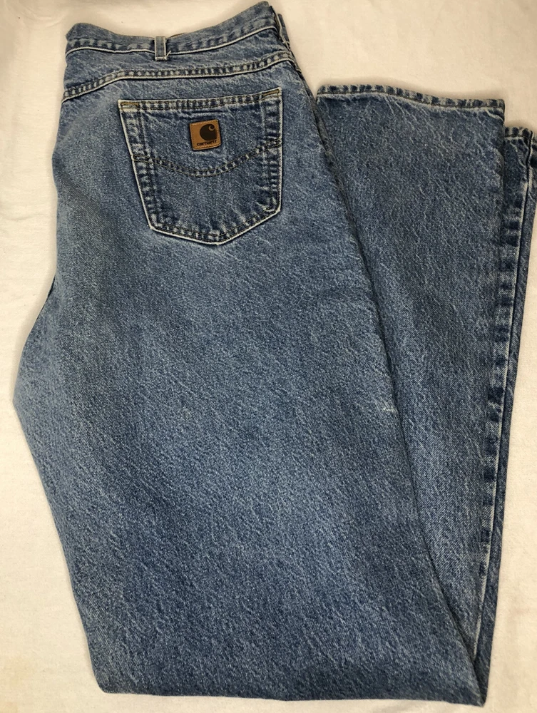 Mens Carhartt Denim Relaxed Fit Pants Jeans size 42 X 35.5. Two white marks on the front of jeans-one at knee and one closer to end of leg. Pictures of both included. Condition is "Pre-owned". Shipped with USPS Priority Mail. WE WILL COMBINE SHIPPING ON MULTIPLE ITEMS IF POSSIBLE. PLEASE CHECK OUT OUR OTHER ITEMS. THANKS FOR LOOKING.