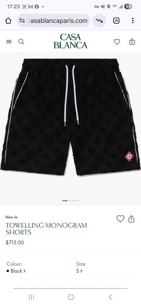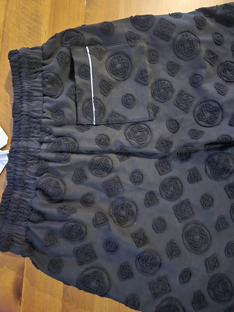 The Men's Casa Blanca Paris Towelling Monogram Short in size S is a stylish and sophisticated shorts perfect for those who appreciate a touch of Parisian flair. Made by the brand Casablanca, this black short features a monogram design and is ideal for men looking to add a trendy and unique piece to their wardrobe. Whether worn casually or dressed up, this short is sure to make a statement with its Parisian theme and high-quality construction. Retails for $715 year around at boutiques and Neiman Markus