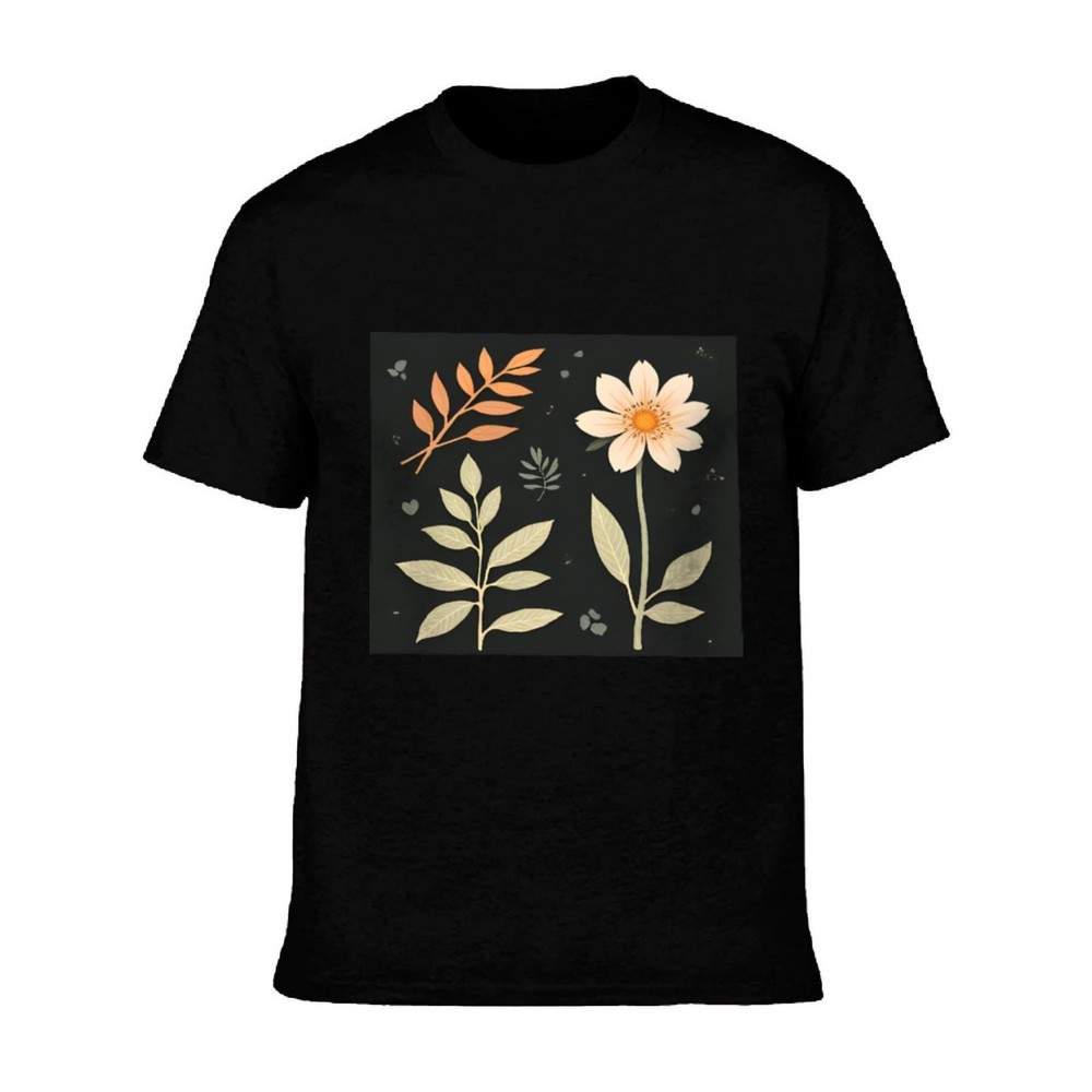 $ 5.72Men's Cotton Short Sleeve T-Shirt - Elegant Black Tee with Vibrant Pink Floral