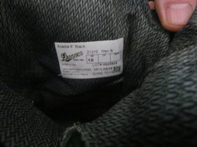 This is a pair of Danner, Acadia 8" Black, Gore-Tex boots in a men's size 10-B. Made in the USA. As pictured the soles are worn but the uppers are in great condition. Clean and odor free. Please e-mail me with any questions. Thanks for looking.
