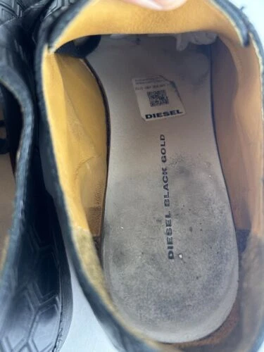Shoes are pre owned with some general signs of use. Want to note there is no US size marked on these but diesel size guide puts a 42 European at US size 9. Mens Diesel Black Gold Leather Shoes Size US 9, Eur 42 Laser Cut Leather Pattern Description Our SKU: 10444808 Item Brand: Diesel Item MPN: Shoes are pre owned with some general signs of use. Want to note there is no US size marked on these but diesel size guide puts a 42 European at US size 9. Please let us know if you have any questions regarding a past or future purchase. Check out our entire store for more great products and deals!! Warranty Our inventory is purchased from various different manufacturers, retailers, and 3rd party sources. We do not represent or make any claim regarding any manufacturers warranty. We do however make every possible attempt to accurately describe the inventory we sell and stand behind it. We offer a no-questions asked 30-day return policy on everything we sell if the item is in the same condition it was sold in. If you have any issues at all with your purchase please feel free to contact us, we want to make it right!! Shipping All items are carefully packed and properly protected for shipment. We use several different carriers and choose the most economical for the item and destination based on the estimated handling and transit time. Please make every attempt possible to verify that part/product being purchased is correct for your application In the event of shipping damage, item not as expected, or any other reason to desire to return the product, please feel to contact us. At this time we do not offer internation shipping. About 8TEN Industries Since 2016, 8TEN Industries has been a leading asset recovery provider supporting national retailers, brands, and manufacturers. Our 60,000 square foot processing and distribution facility located in Cass City, Michigan has allowed us to become industry leader in turning difficult problems for manufacturers into great deals for our customers. More Items Store Contact Follow Us 8TEN Industries