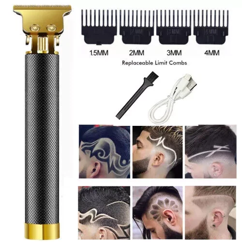 Professional Hair Clippers Trimmer Shaver Clipper Cutting Beard Cordless Barber Features: T BLADE TRIMMER DESIGN: The T blade is made of carbon steel and ceramic, it's very sharp to cut your hair off without hurting your skin. USB CHARGING: The cordless design is convenient for you to carry with during your travel or for home use. ERGONOMIC METAL DESIGN: Slim body design makes it easy to handle with ,the all metal body design makes it sturdy and durable to use compared with traditional plastic hair clippers. WIDE APPLICATION: Used for cutting your hair and removing your beard, the hair under your arms , your hands, legs, or your body hairs. Perfect for men women children or elderly. Note: Due to manual measurement, there will be an error of +/- 5 mm. Due to the shooting angle and the display, the goods may have a color difference from the picture. Package Included: 1 x Hair clipper 1 x USB charging cable 1 x Cleaning brush 1 x Manual 1 x Box 4 x Limit combs