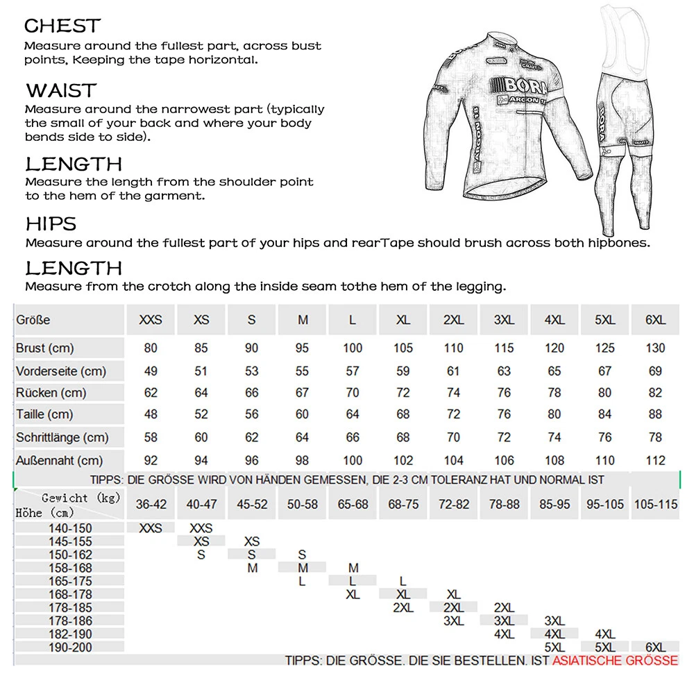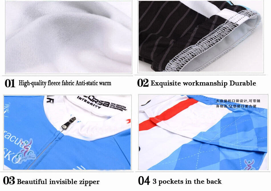 Product Description Fleece Fleet Long Sleeve Cycling Jersey Suit This men's long sleeve cycling jersey is made of high quality polyester and spandex for both comfort and durability. Gender: Male Jersey 100% polyester Zipper: full length concealed zipper POCKETS: Three reinforced sewn-in back pockets on the back of the jersey Grips: Silicone grips at the end of the jersey prevent movement Bibs: 80% polyester and 20% spandex Padding: 3D silicone GEL breathable padding Printing: Each piece of fabric in the garment is individually printed, cut and sewn to ensure the pattern remains intact. The high-definition prints are a delight to the eye. Suitable Season: Spring and Fall and Winter Long Sleeve Cycling Jersey Features: *Reflective strips under jersey pockets for added safety while cycling. *Durable silicone grippers at the hem ensure a perfect fit while riding. *Premium fabric provides UPF 50+ sun protection. *Sports fabric has excellent moisture wicking function to keep you dry at all times. *A smart blend of different functional fibers for optimal aerodynamics and body climate regulation. *Please refer to the size guide before make order. Men summer outfit will be always fit tighter than regular clothing. Those size in Asian size which 1-2 size smaller t han you usually wear! if in doubt, please con tact us. We can offer this product from S to 6XL! *We are a cycling clothing factory that can provide you with personal customization and mixed size services, if you need, please contact us via eBay. About Us Payment Shipping Contact Us How we got our start? Our brand Wulibike was founded in Vicenza, Italy in 2016. The founder is a fabric list and a senior cyclist. After a year of testing in the laboratory, we found the most suitable fabrics for cycling and designing high-performance cycling jerseys made by cooperative factories in Asia. What makes our product unique? By utilizing the raw materials and superior quality control managers of our warehouse neighbors, we work to provide you with world-class products and services. You never have to wait and save on superior equipment. We want you to stack your wardrobe with as many options as possible. Why we love what we do? Whether you are a lone wolf, a close-knit group having fun, or an intense peloton, we can offer you customized equipment for top performance and a confident appearance. We use state-of-the-art thermal printing to protect the integrity of our materials and the longevity of your designs. Thank you for choose cycling jersey on Wulibike brand! We accept all of the payment mothod which available pay on eBay 1, WHEN WILL MY ORDER SHIP? Order usually will be processed and dispatched within 24-48 hours after payment is clear. Some take longer if the warehouse delay or meeting weekend. Once your cycling gear's order has shipped a tracking number will be update on your order record. 2, HOW LONG WILL IT TAKE FOR MY ORDER TO ARRIVE? Wulibike bike clothings shiped from local warehouse, it usually takes 3-9 working days from order despatch as a guideline. Wulibike cycling jerseys shiped from outside local warehouse, it usually takes 10-25 working days from order despatch as a guideline. Please note that the estimated delivery time is depending on destination countries,and may subject to customs clearance process, and weather condition in you, please email us if you don't receive your bike gears after estimated delivery time. We will track your shipment and get back to you as soon as possible. Our goal is 100% customer satisfaction. 3,CORRECT AND COMPLETE ADDRESS DETAILS Please ensure your delivery address is complete. If delivery address is a business address, the business name and location of the recipient should be included. Street number and apartment number (if applicable) are critical details, so the same as the correct postal code. If any of these details are missing or incorrect, your order may not be delivered. We are unable to assist in cases where an order is entered with an incorrect address however we will refund any incorrectly addressed orders that are returned to us by the carrier. If you have any question, Please DO NOT HESTIATE TO CONTACT US ( https://www.ebay.co.uk/contact/sendmsg&recipient=creativegroupin) by eBay message. We will respond within 24 hours during normal business hours (if in weekend, we will reply on Monday). We really care for our valued customers, if you have any questions, our Customer Service staffs will try their help to help you solve your problem. About Us How we got our start? Our brand Wulibike was founded in Vicenza, Italy in 2016. The founder is a fabric list and a senior cyclist. After a year of testing in the laboratory, we found the most suitable fabrics for cycling and designing high-performance cycling jerseys made by cooperative factories in Asia. What makes our product unique? By utilizing the raw materials and superior quality control managers of our warehouse neighbors, we work to provide you with world-class products and services. You never have to wait and save on superior equipment. We want you to stack your wardrobe with as many options as possible. Why we love what we do? Whether you are a lone wolf, a close-knit group having fun, or an intense peloton, we can offer you customized equipment for top performance and a confident appearance. We use state-of-the-art thermal printing to protect the integrity of our materials and the longevity of your designs. Payment Thank you for choose cycling jersey on Wulibike brand! We accept all of the payment mothod which available pay on eBay Shipping 1, WHEN WILL MY ORDER SHIP? Order usually will be processed and dispatched within 24-48 hours after payment is clear. Some take longer if the warehouse delay or meeting weekend. Once your cycling gear's order has shipped a tracking number will be update on your order record. 2, HOW LONG WILL IT TAKE FOR MY ORDER TO ARRIVE? Wulibike bike clothings shiped from local warehouse, it usually takes 3-9 work