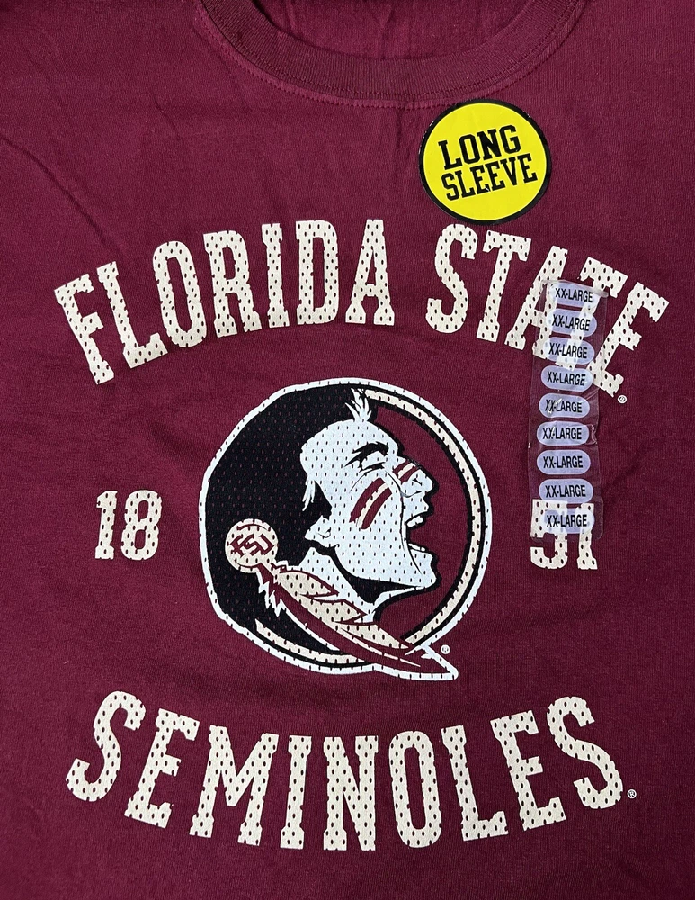Show your support for the Florida State Seminoles with this officially licensed Hanes long sleeve T-shirt. The shirt is made of 100% cotton and features the team's iconic maroon/garnet and gold colors. It's perfect for any football fan or collector of FSU memorabilia. The shirt is designed for men and is available in size 2XL. It's great for wearing to games or just around town to show off your team spirit. Get yours today and show everyone that you're a true FSU fan!