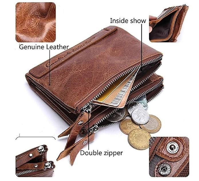 This wallet is a game-changer—genuine leather, RFID protection, and smart storage for cards and cash. Holds everything securely without bulk, plus it looks sleek! Perfect for daily use or travel. Highly recommend for its quality and design. Love the zip compartment—keeps essentials safe and organized!
