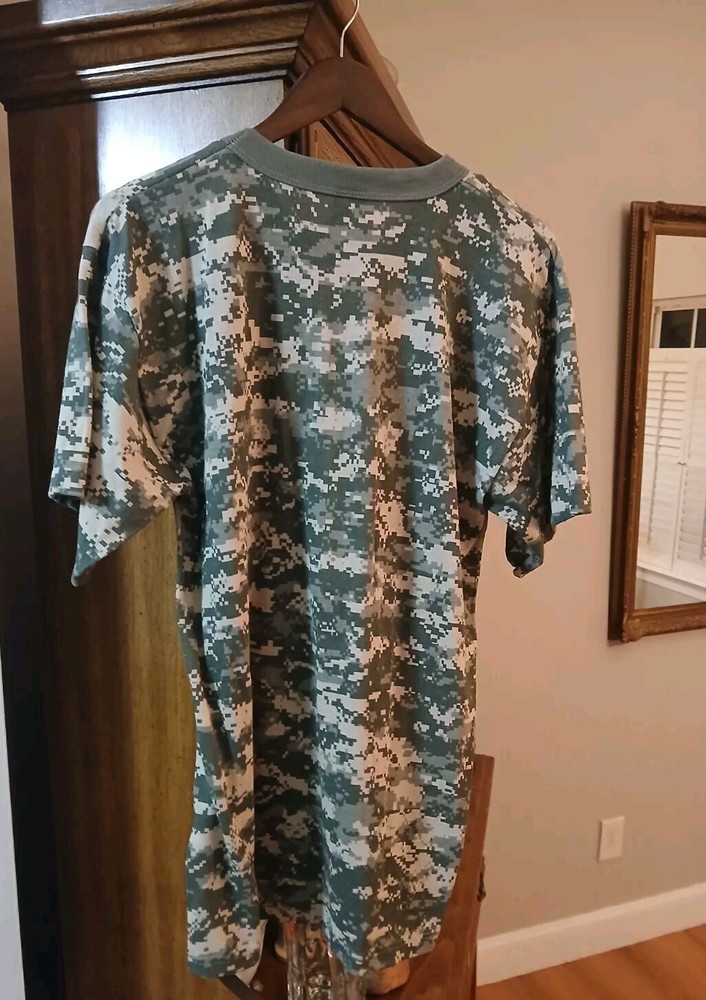 Love this camo tee! The fit is perfect—roomy but not oversized—and the fabric is super soft yet durable. The digital print is sharp, and the green shade looks great. Made in the USA is a nice bonus. Highly recommend for casual wear or outdoor adventures!