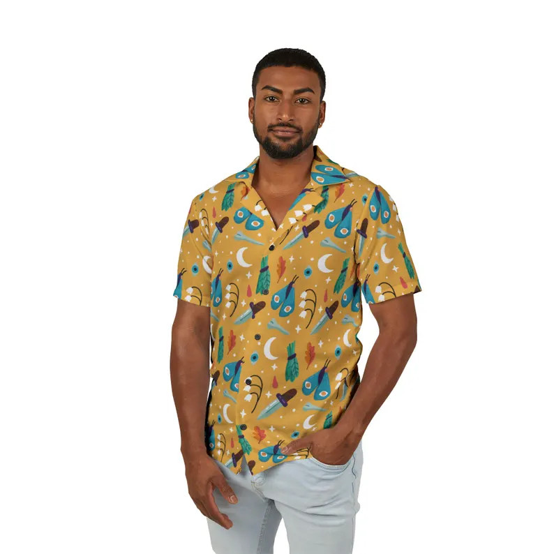 This is a personalized product. Please provide complete and accurate information (fill in the personalization box or send it via message) so we can design the best version for you. Product Description Bring island vibes to your wardrobe with our Hawaiian Shirt , designed for comfort, style, and vibrant color. Featuring full-surface, edge-to-edge printing , this shirt is perfect for vacations, summer outings, beach days, parties, or everyday casual wear. Product Details Style: Hawaiian / Aloha Shirt Fit: Unisex relaxed fit Material: High-quality polyester fabric Fabric Features: Lightweight and breathable Smooth, soft feel Quick-drying and wrinkle-resistant Printing: Full-color all-over sublimation print Design covers the entire shirt surface Colors remain vibrant wash after wash Design & Construction Short sleeves Button-down front Classic collar Professionally sewn for durability Printed using premium sublimation technology for long-lasting results Care Instructions Machine wash cold , separately Tumble dry low heat Do not bleach Do not iron directly on printed areas Do not dry clean Processing & Shipping Processing Time: 3-5 business days Shipping Time: 7-10 business days (U.S. only) Shipping time does NOT include Saturdays, Sundays, or holidays We always aim to ship orders as quickly as possible: During off-peak months , orders may arrive earlier than estimated During peak seasons (holidays or high order volume), shipping may take slightly longer Sizing Notes (Important) Please refer to the size chart before ordering Manual measurements may vary by 1-3 cm Fit is designed to be relaxed and comfortable Perfect For Beach vacations & summer trips Parties, festivals & themed events Casual everyday wear Unique and fun gifts for birthdays, holidays, or special occasions Our products may be manufactured either in the U.S. or at overseas facilities, depending on availability and production capacity at the time. This is to ensure that we deliver the best possible quality to you. Please rest assured and place your trust in us.