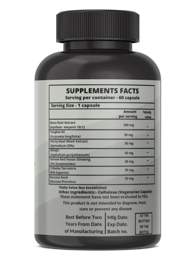 Heroot Men Health capsules Heroot Men health capsules are formulated to support sexual vitality and enhance overall sexual well-being. These supplements often contain a blend of natural ingredients like maca root, Horny goat weed, Tongkat Ali, Shilajit, Panax, Tribulus, Mucna which are known to improve libido, increase stamina, and promote healthy blood flow. By addressing factors like stress, hormonal balance, and energy levels, sexual health capsules can help improve performance and satisfaction. Regular use of these capsules, alongside a healthy lifestyle, can contribute to a more fulfilling and confident sexual experience. Key Ingredients: Maca Root Horny Goat Tongkat Ali Shilajit Panax Ginseng Tribulus Terrestris Mucuna Key Benefits: Boosts Testosterone Boosts Energy Natural libido support Performance enhancer Improved Stamina Reduced Stress Enhance Mood Directions For Use: As a dietary supplement, take one capsule per day with water or as recommended by your healthcare provider. Safety Information: Store in a cool dry place Keep out of reach of children If you are pregnant or lactating or prone to any food allergy or under any medical condition consult your healthcare practitioner before use Disclaimer The above description is for information and knowledge purpose, not a healthcare professional advice. Please consult your doctor and/or pharmacist before you take this vitamin. Pregnant or lactating women, diabetics, hypoglycemics, and people with known medical conditions and/or taking drugs, should consult with a licensed physician and/or pharmacist prior to starting any supplementation program. The above statements have not been evaluated by the Food & Drug Administration. Shipping and Handling Shipping time will be 1 business day after the cleared payment We will ship by Indian Post service Shipment will take 15-30 days. Few more days for your local customs delay and formalities. For Express service additional charges will be applied. For any reason you wish to leave Negative or neutral feedback, Please contact us first and let us mutually resolve it. We care for your satisfaction and will make sure that you are happy with the transaction to post us 5**** ratings in all areas. ***Customs Information*** Heroot will not be liable for packages refused or held by customs for delivery. We request that you contact customs office and ask about import regulations and restrictions before placing your order. It is importsnt for you to become familiar with customs policies for your specific country before ordering. Customs regulations differ by country and not knowing their regulations can result in your order incurring high import duties, the delivery being delayed or even returned. Please check with your customs office to see if your country permits the shipment of the products you are planning to order from us and if any additional licenses or permits are needed. Please note: if your order is returned to us due to banned/ restricted products policy, a wrong address, refusal to pay customs fees, refusal to accept the order or because no one was there to accept the delivery of your order, we will refund your order as follow: you will be refunded the total amount of the order, minus the original shipping charge.
