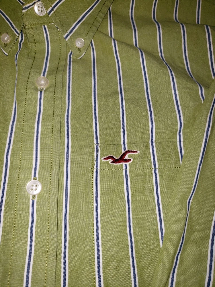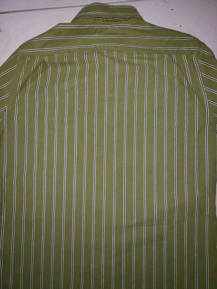 This Hollister shirt is perfect for any casual occasion. The green and blue striped pattern gives it a classic look, while the embroidered accents add a touch of sophistication. The long sleeves and collared neckline make it suitable for all seasons, and the button closure ensures a comfortable fit. Made of soft and durable cotton knit fabric, this shirt is both stylish and practical. The XL size and regular fit make it a great choice for men, and the pockets add convenience. Whether you're dressing up or down, this shirt is a versatile addition to any wardrobe. Measurements 22 inches armpit to armpit 29 inches collar to bottom Will ship by usps upon receipt of payment, usually the same day or next All offers will be considered