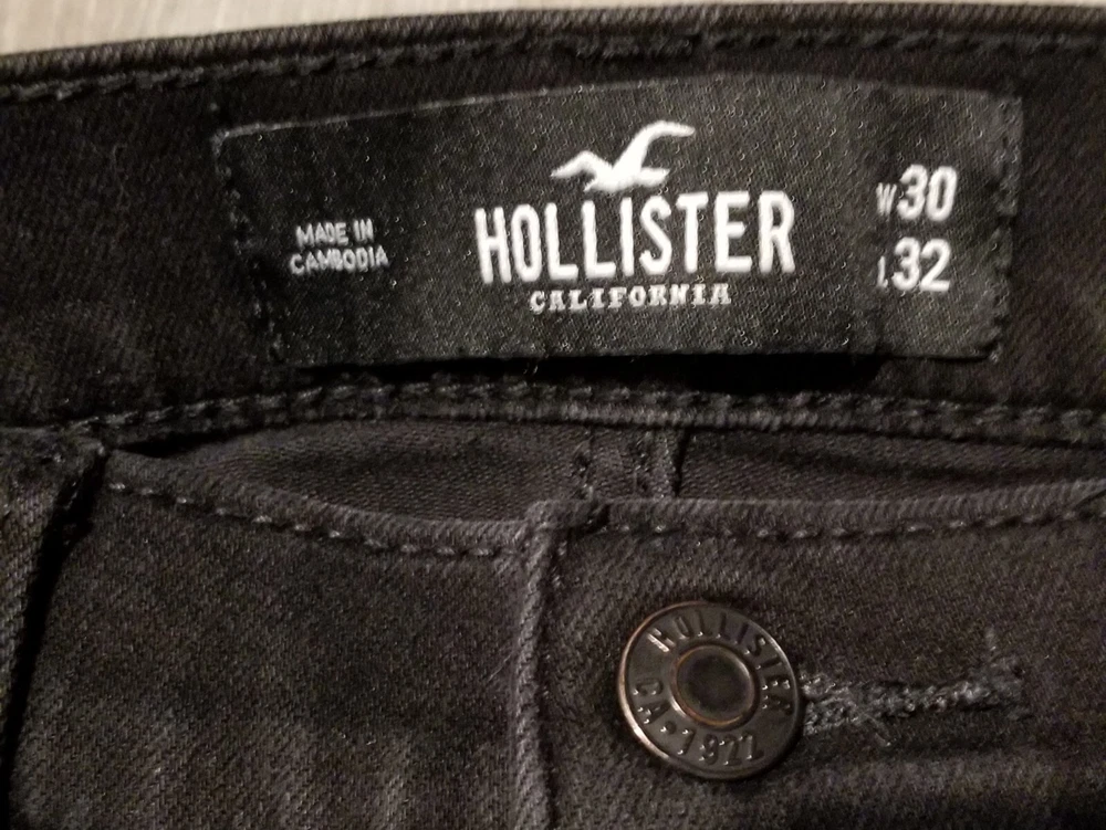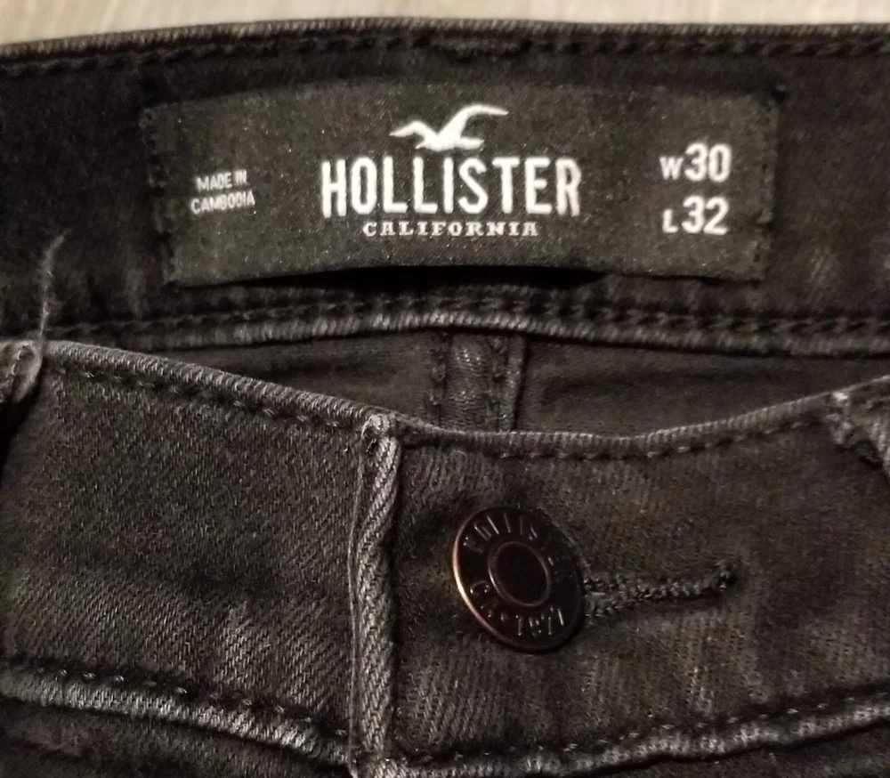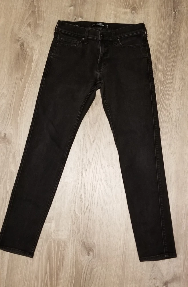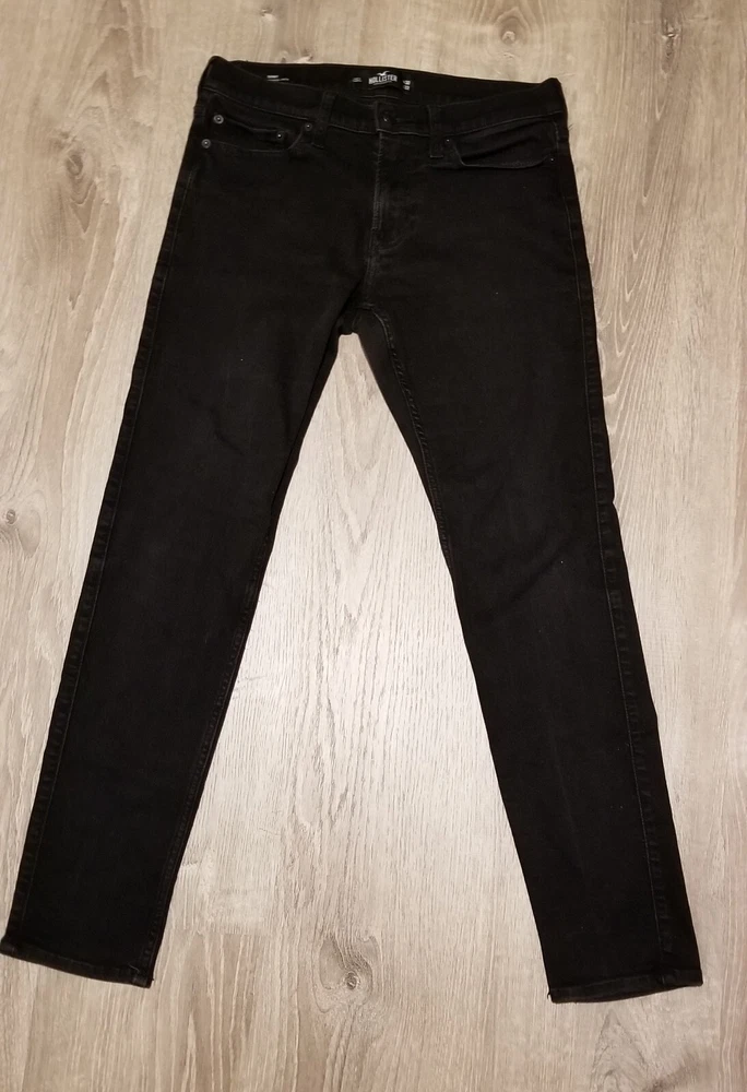 Elevate your style game with these Hollister skinny jeans in black. Designed for men, these jeans feature a slim fit with a 30-inch waist size and 32-inch inseam. The zip and button closure provides a secure fit, while the stretch material ensures comfort throughout the day. These jeans come with advanced stretch technology and slimming features, making them the perfect addition to your wardrobe. The Hollister brand is known for its quality products, and these jeans are no exception. Ideal for casual and formal occasions, these jeans are a must-have for any fashion-forward man.