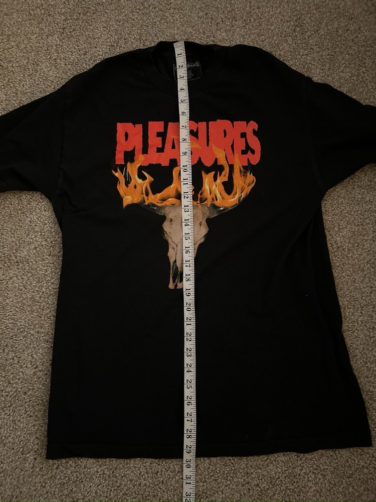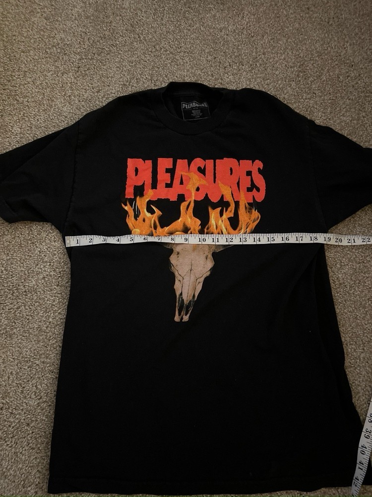 Pleasures T-Shirt Mens L Black Flaming Skull Graphic Streetwear Grunge Tee. Condition is Pre-owned - Good. Shipped with USPS Ground Advantage.