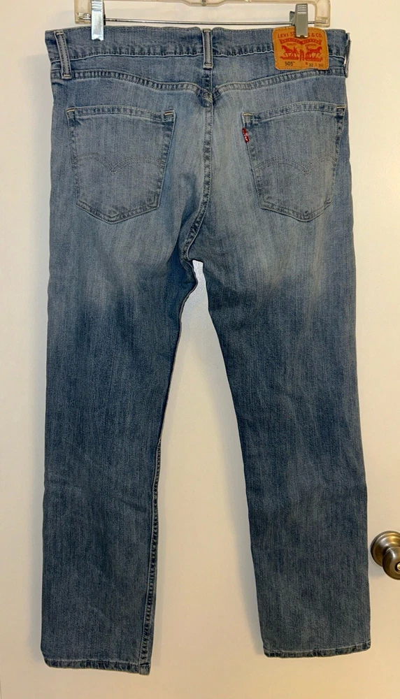 Men's Levi's 505 Jeans 32x30 Regular fit Straight leg (Measures 34x30) Levi in very good gently used condition. Measure flat: 17" waist (double this) 30" inseam 11.5" Rise