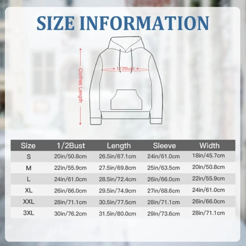 Product Details ···Material: 50% polyester + 50% cotton blend. Blends cotton’s softness with polyester’s stretch/durability; smooth texture, resists deformation, balances comfort and function. ···Fit & Design: Hooded with loose cut. Hood for wind protection/warmth (flatters face); relaxed fit suits all bodies, no movement restriction; easy to slip on/off, all-day casual comfort. ···Performance: Premium fabric with great breathability—no stuffiness/stickiness when sweating (keeps dry). Skin-friendly, non-irritating (safe for sensitive skin); cozy from morning to night. Gender Positioning ···Men’s specific hooded sports shirt—tailored to men’s body shapes and dressing needs. Features a non-restrictive, comfortable fit and a neat, stylish design. ···Scenarios: Versatile—daily commute (pair with jeans/casual pants for laid-back style), workouts (breathable, free movement), travel (lightweight, space-saving, handles temp drops). ···Washing & Care: Hand/machine washable, low-temp ironable. Turn inside out, wash with like colors (prevent bleeding); avoid bleach (keep fabric/prints vibrant, reduce fading). ···Size Info: 2–4cm size error (due to measuring tools/methods) is normal. ···Refer to size chart + body measurements when ordering. ---Optional sizes: S, M, L, XL, 2XL, 3XL - A comprehensive coverage design suitable for various male body types. --- Practical design :With convenient pockets, this hoodie is perfect for everyday wear, keeping your essentials within reach. ---Suitable for many seasons: spring and autumn, a single hoodie - winter hoodie can be the most suitable - summer air-conditioned room single hoodie. ---Perfect for any occasion: perfect for casual gatherings, themed parties, or as thoughtful gifts for friends and loved ones to show off their unique style. On Jan 14, 2026 at 18:14:07 PST, seller added the following information: