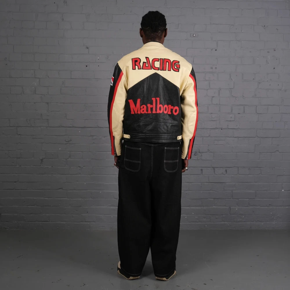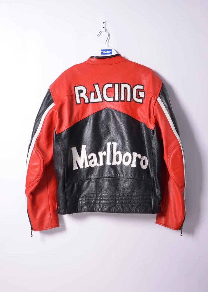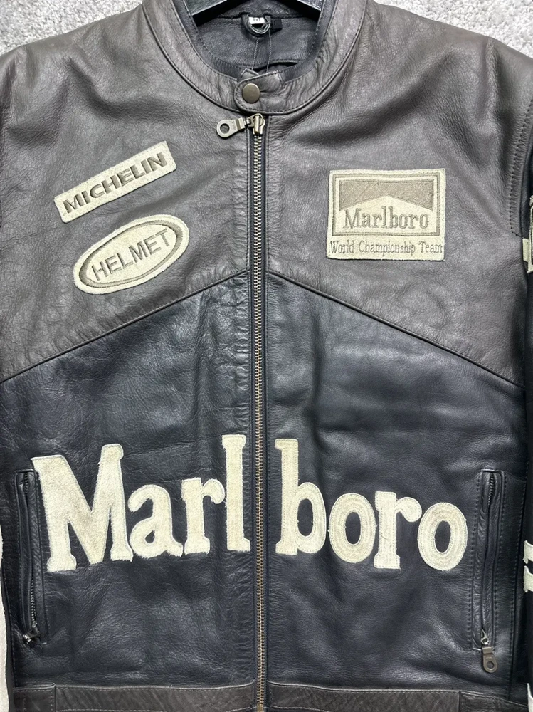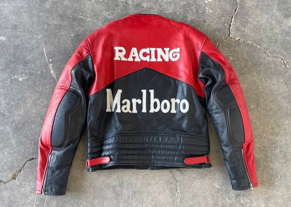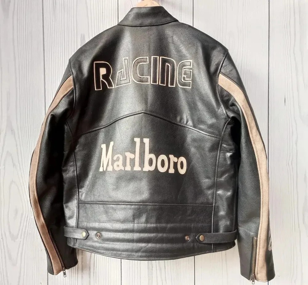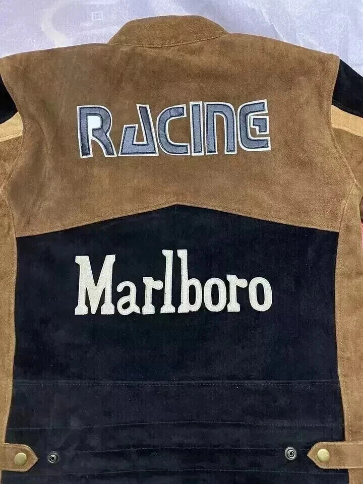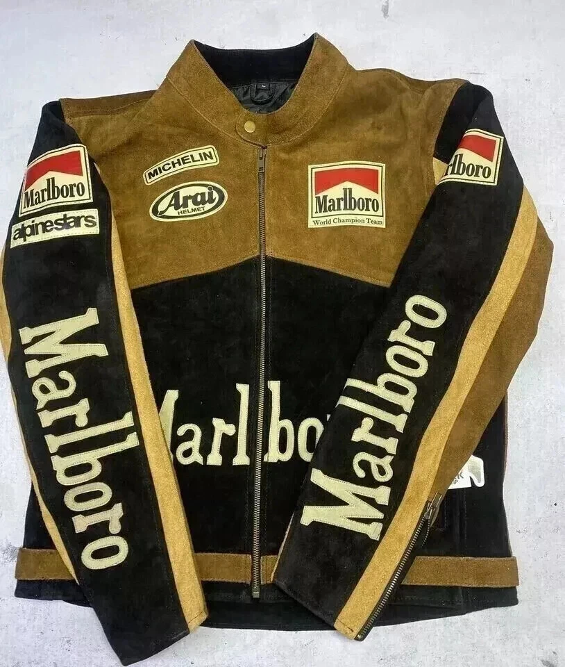 Men's Marlboro Racing Multicolor Motorcycle Biker Genuine Cowhide Leather Jacket Product Description: Turn heads and ride with confidence in the Men’s Marlboro Racing Multicolor Leather Jacket — a bold tribute to classic motorsport culture. Featuring a striking mix of red, white, yellow, and black , this jacket is inspired by vintage racing designs and the iconic Marlboro branding that defined an era of speed and rebellion. Made from high-quality genuine cowhide leather , this jacket is built to withstand the road while offering a stylish, race-ready look. The multicolor panel design , coupled with embroidered and printed racing logos, makes it a standout piece for riders who want to make a strong impression on and off the bike. Features: Constructed from 100% genuine cowhide leather (1.2mm – 1.3mm thick) Iconic Marlboro racing logos and detailing for authentic style Bold multicolor design : red, white, yellow & black for a true racing aesthetic Durable YKK front zipper , zippered cuffs, and waist adjustment straps Polyester inner lining for all-day comfort and breathability Optional removable CE armor padding at shoulders, elbows, and back Functional inner and outer pockets for convenience Suitable for motorcycling, casual wear, or motorsport events Perfect for riders and collectors alike, this jacket delivers a vintage racing vibe with modern craftsmanship. Make every ride a statement.