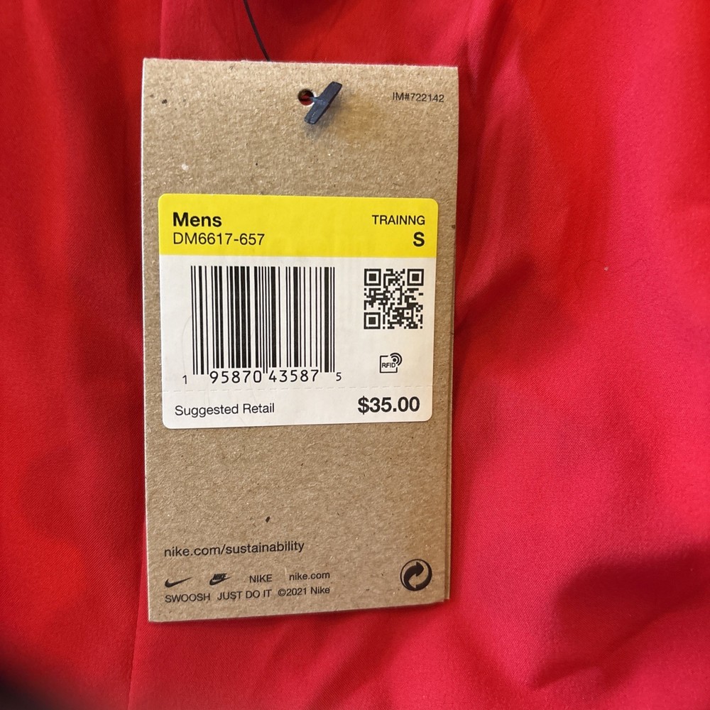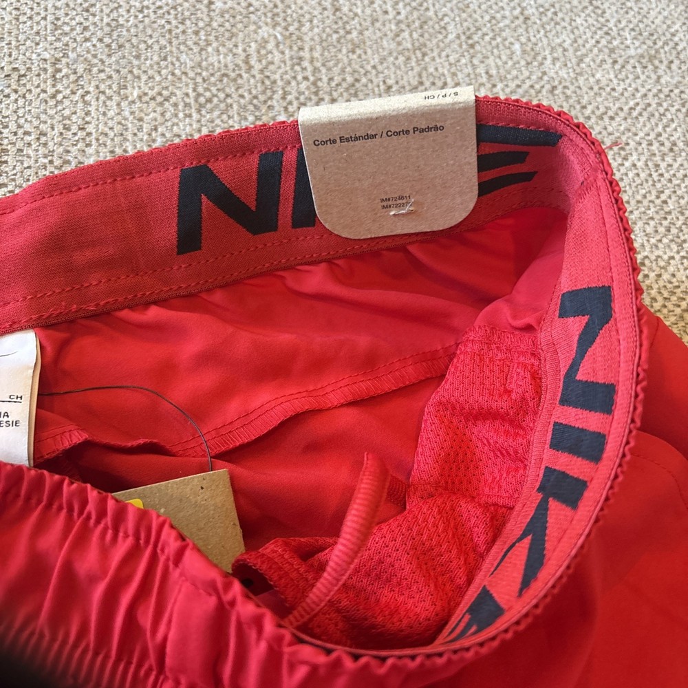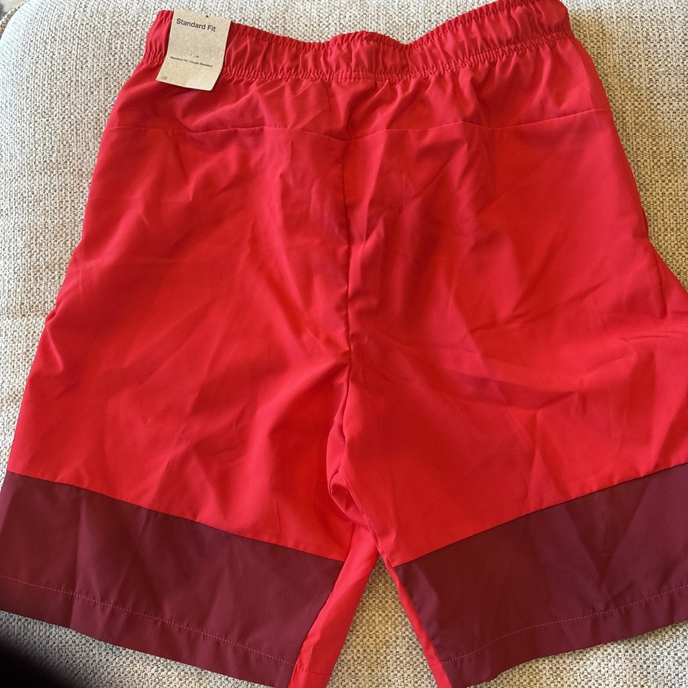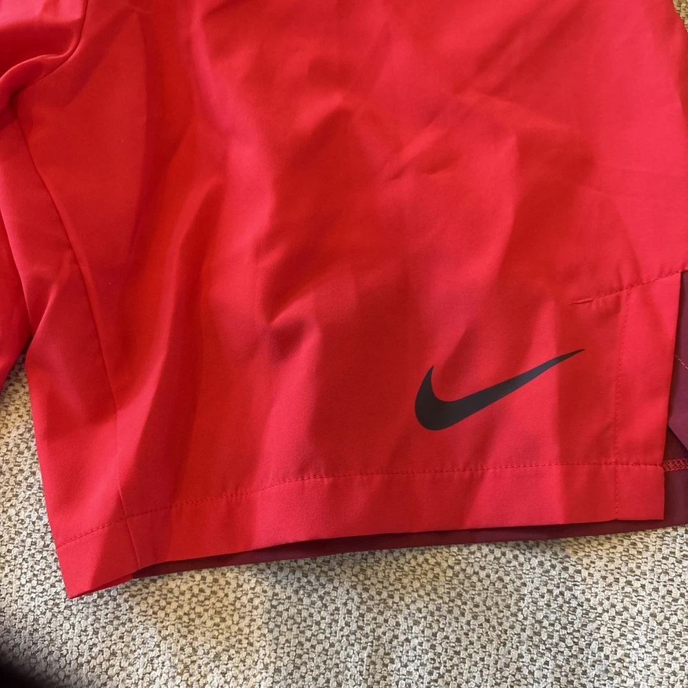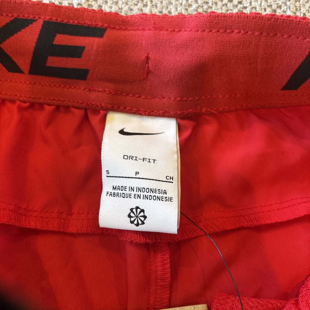 The Men's Nike Dri Fit Running Shorts in red, size small, are perfect for active occasions. Made of polyester with Dri-Fit technology, these shorts offer breathability and comfort for various activities like running, gym training, and basketball. With a regular fit and 8-inch inseam, they are ideal for summer, fall, and spring seasons. The Nike brand ensures quality and style in this athletic product line, making them a great choice for men looking for performance-driven activewear.