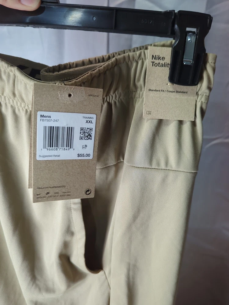 Elevate your activewear game with these Nike Totality Dri-fit Pants in Beige. Designed for men, these ankle-length pants are perfect for any occasion, whether you're hitting the gym or going for a run. Made with Nike's signature Dri-FIT technology, these pants are designed to keep you cool and comfortable during your workout. Featuring an open hem and a 3XL size, these pants are perfect for any body type. The Nike Totality model is a must-have for any activewear collection, with its sleek design and functional features. Don't miss out on these high-quality pants that will take your workout to the next level.