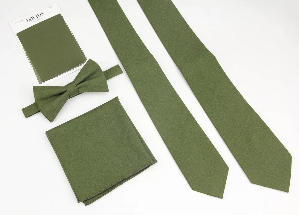 Men's Olive Green Linen Bow Tie & Pocket Square Set