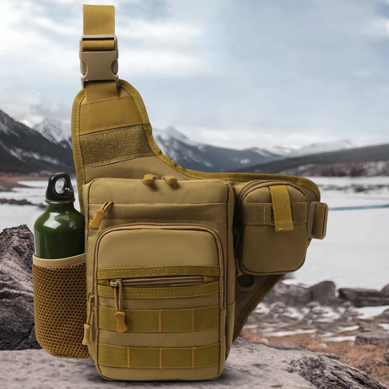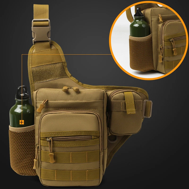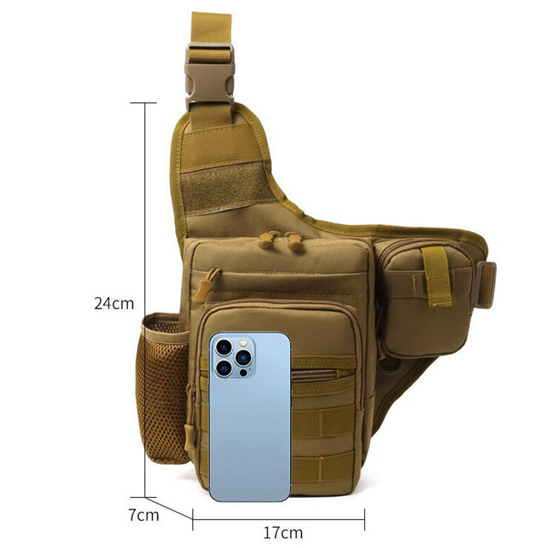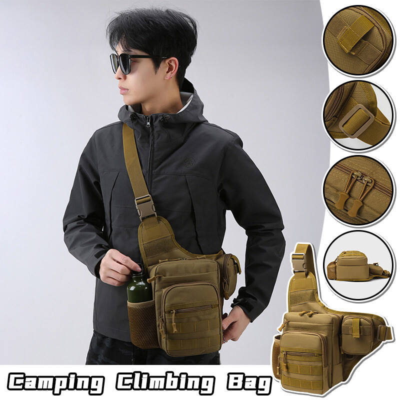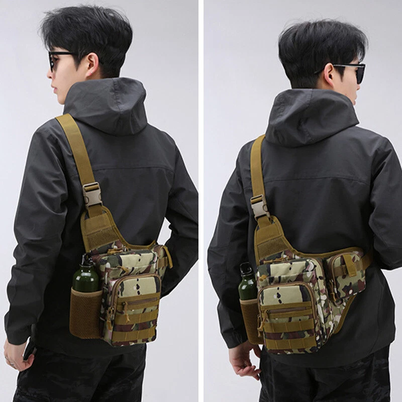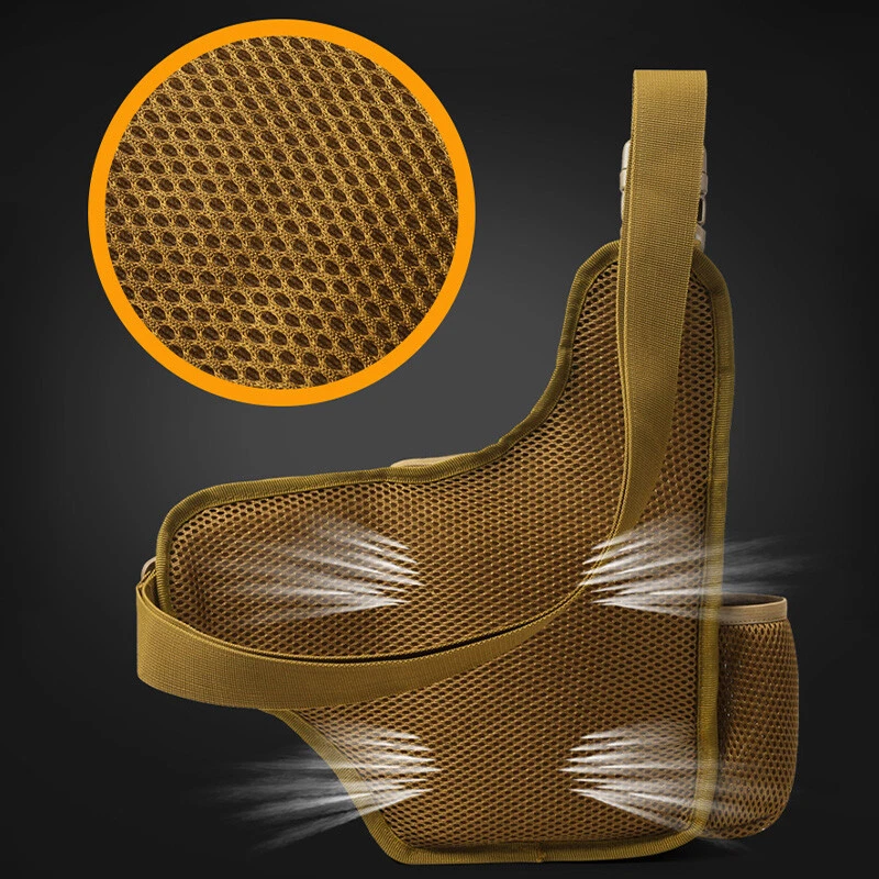 Description Size: 24*17*7CM Material: 600D Oxford Feature: Side mesh pocket for water bottle holder Occasion: Camping,Hiking,Trekking,Mountaineering,Climbing,Traveling,Trip,Tourist ,Gym,fitness,jogging,cycling,bicycle,running,riding School studnets etc. Carrying ways: Single shoulder backpack , chest bag,waist bag, corssbody bag, handbags