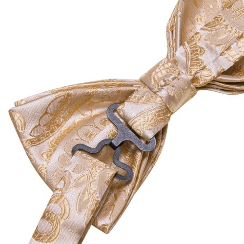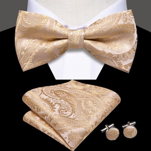 $ 13.03Bow Ties for Men Pre-Tied Pocket Square Lapel Pin Beige Pink Paisley Floral