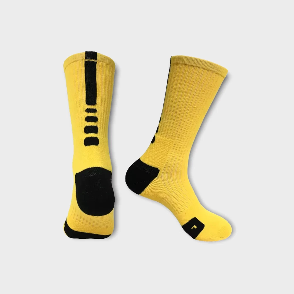 Men's Dri-Fit Cushioned Athletic Basketball Socks Description: - Cushioned, supportive athletic socks for the utmost comfortable support during training/exercise. - 100% brand new, high quality Fabric Features: - Breathable, Non-Slip design Material: - 80% Cotton/ 12% polyester/ 8% spandex Strength: - stretch Colors: - White/Black, White/Red, Black/White, Black/Red, Gray/Black Size: - US Medium (M) — shoe size 8 to 11 (mens) - Length: quarter crew socks Package Content: - One (1) pair of sport socks — other accessories not included Refunds: - Full refund is available within 14 days of purchase if there are any issues with the item.