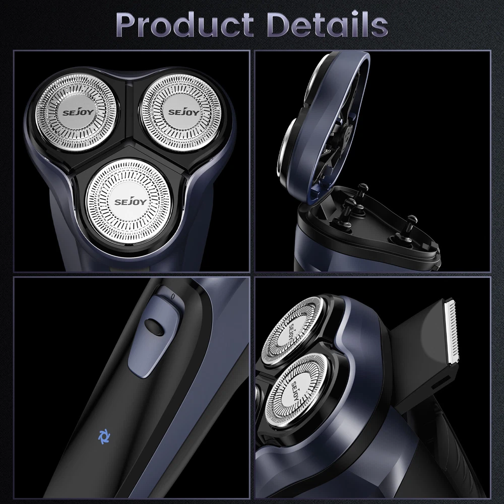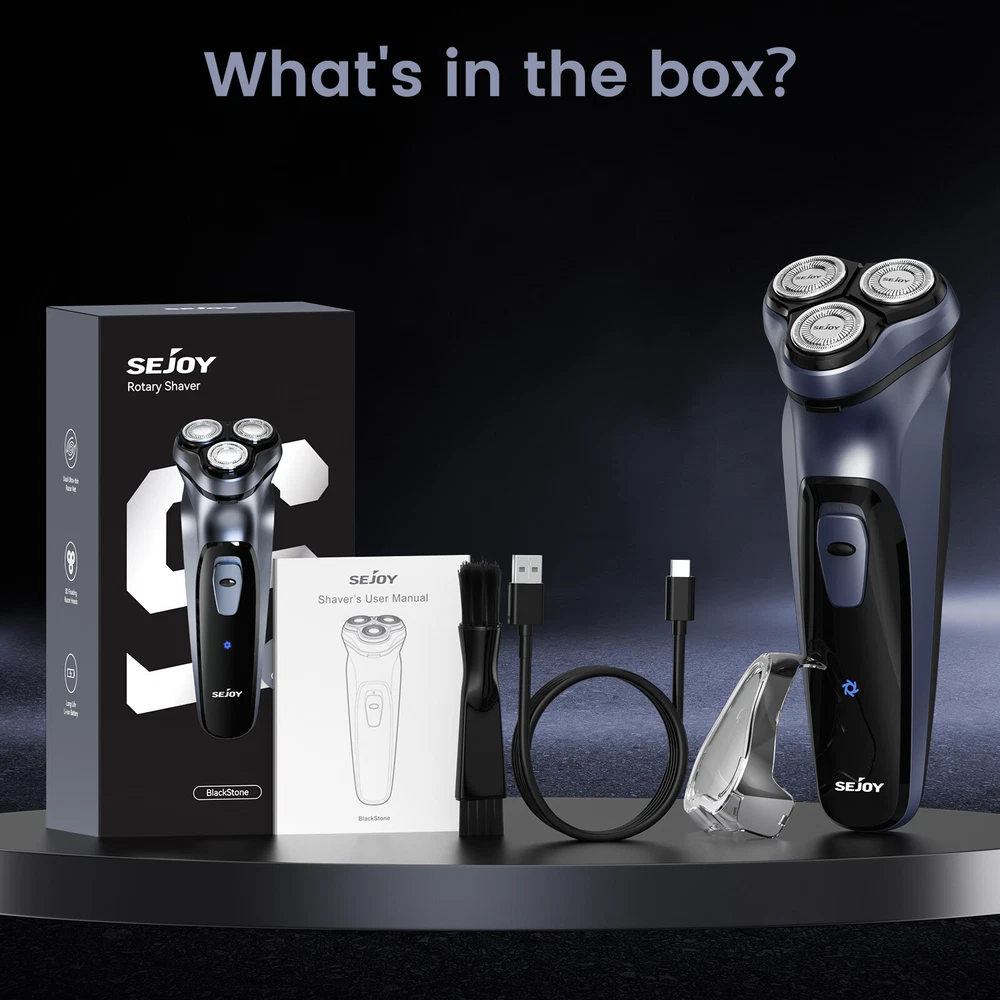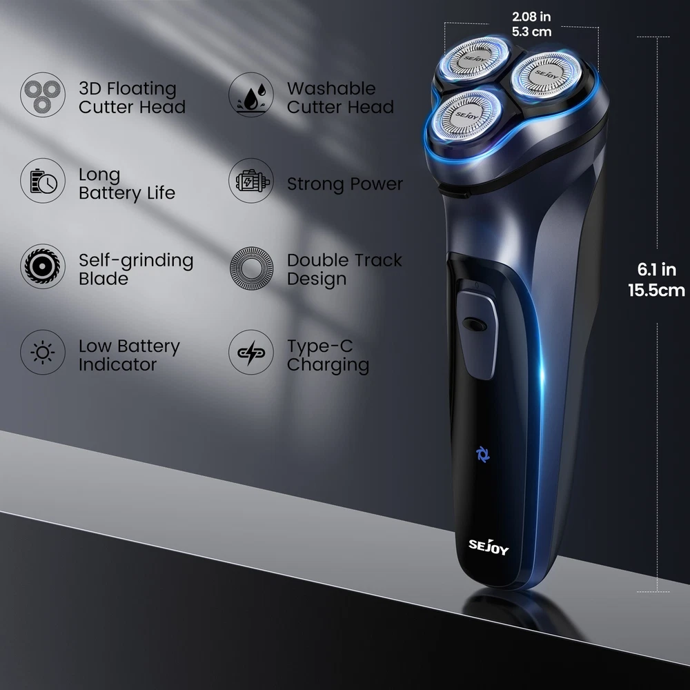 Color: Gray Model: TXD-BLASTO1 Body Area: Face Motor Type: Rotary MPN: Does not apply Features: Quick Charging Time, Rechargeable, Travel Size, Cordless Power Source: USB Charging Department: Men Brand: SEJOY Type: Facial Shaver Number of Heads: 3 Head Type: 3 Head Rotary