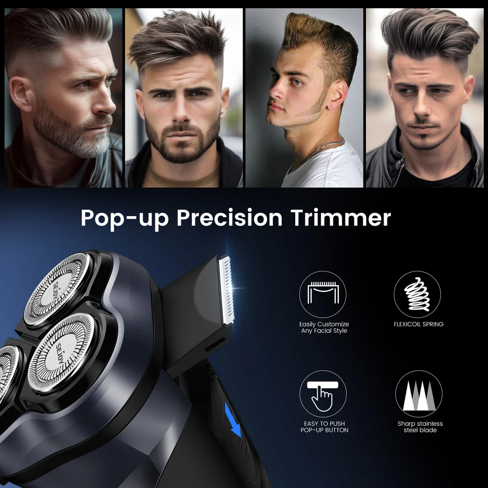 Men's Razor 3D Electric Shaver Rotary Waterproof Pop-Up Trimmer Cordless