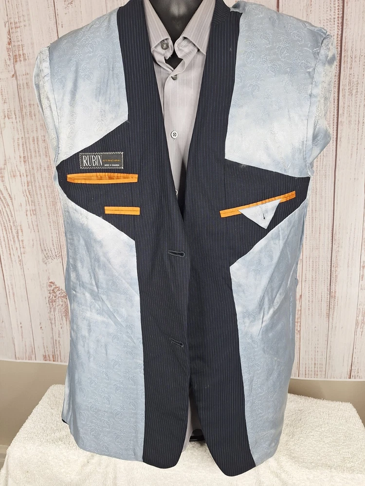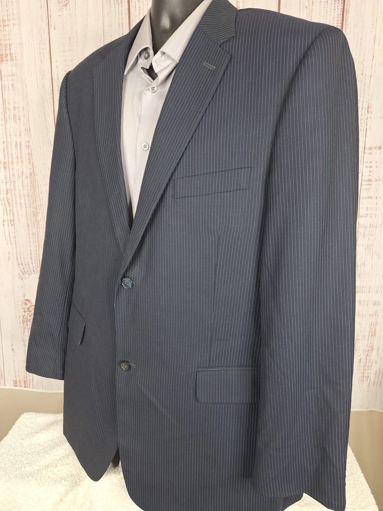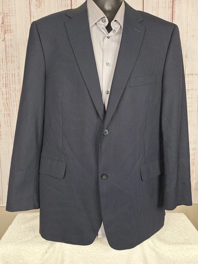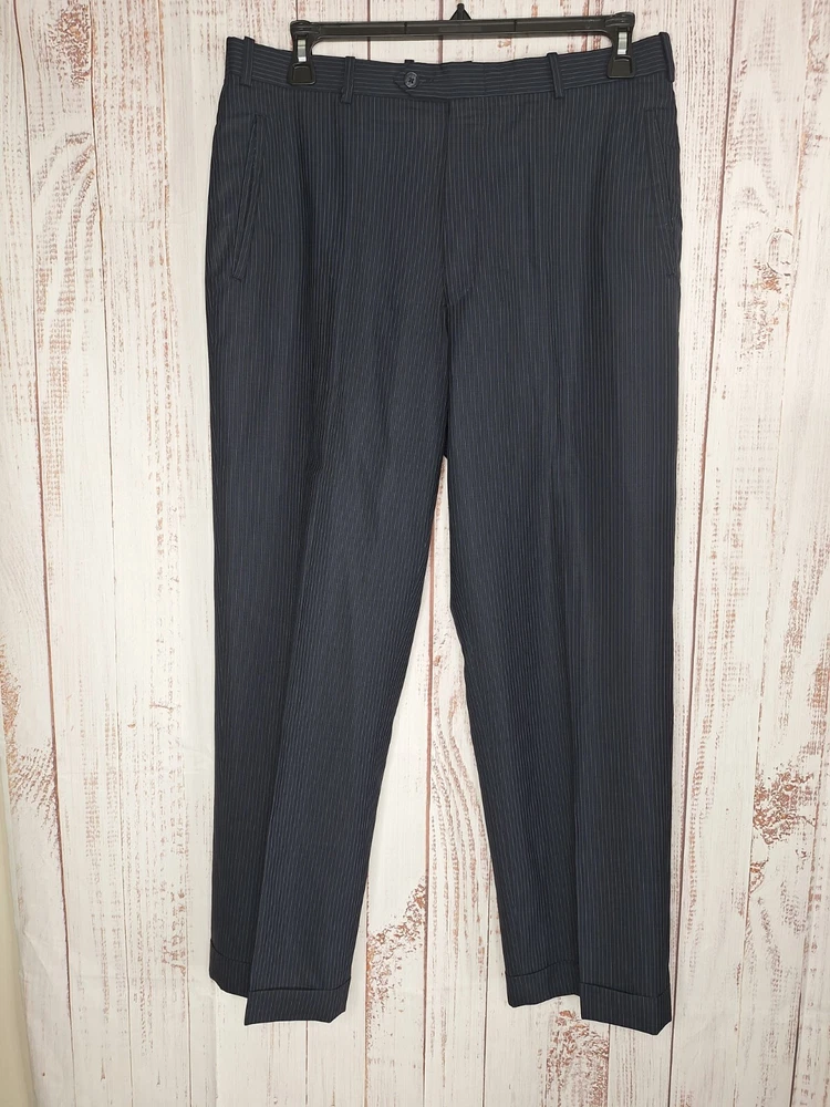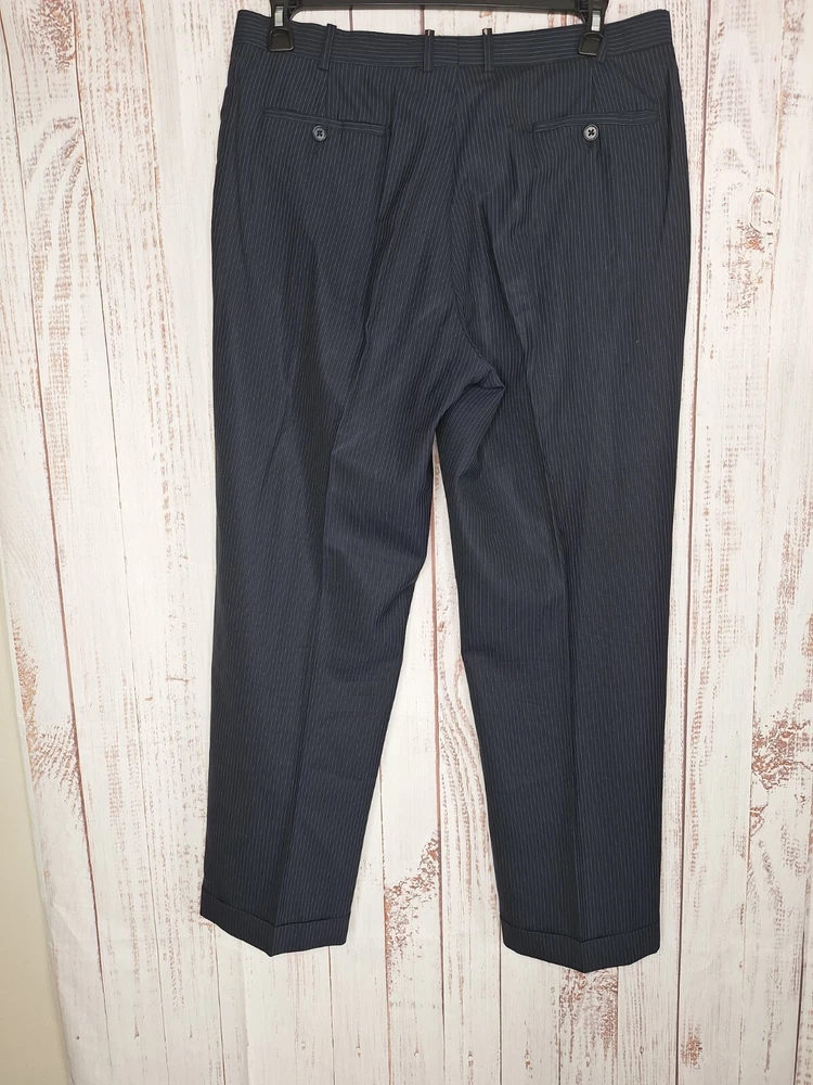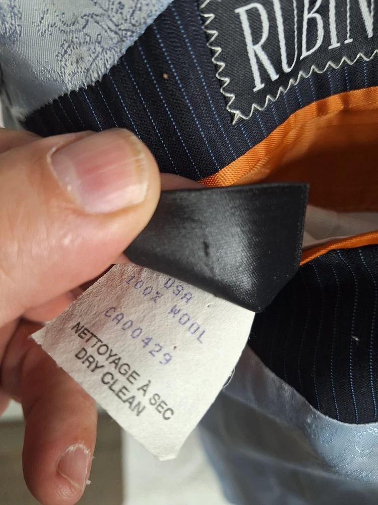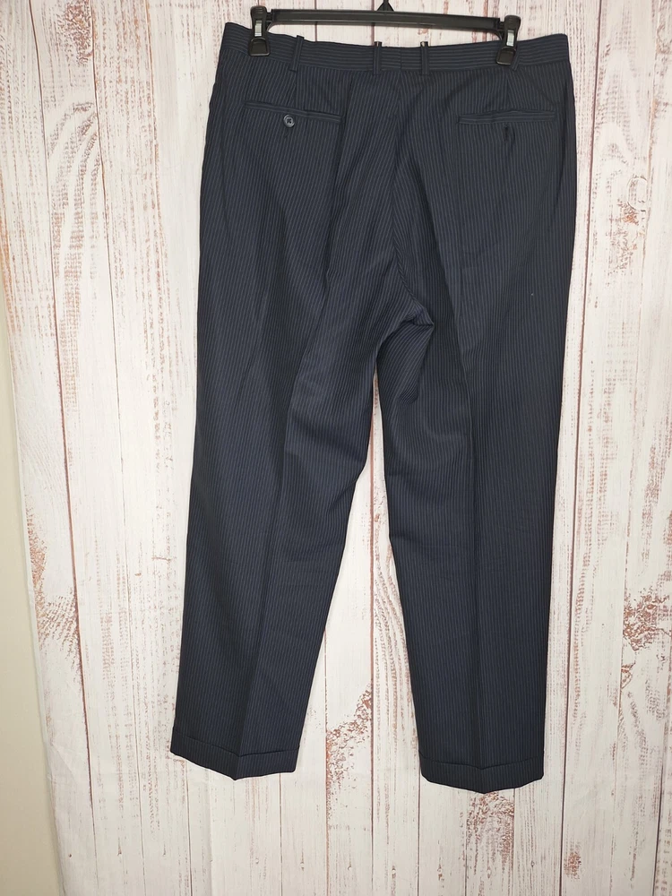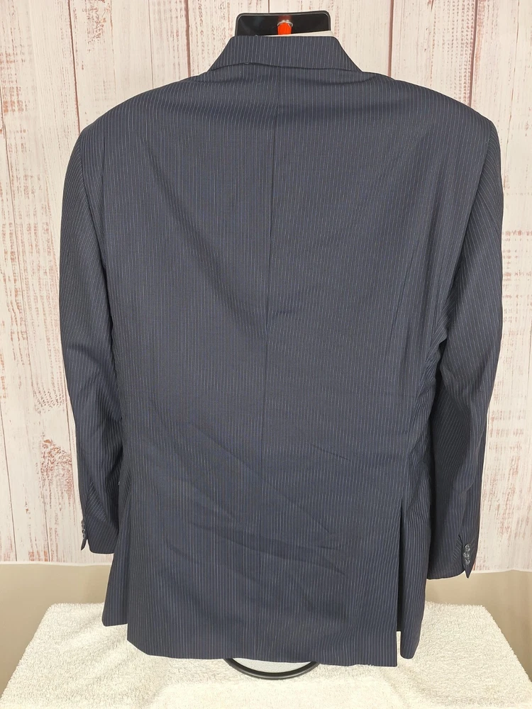 Rubin 2 Piece suit Mens 42L 36X31 Black Blue Stripe Wool Double Vented Quality used condition. Please check out the measurements before buying to ensure a perfect fit.Tailored from 44 to 42L Shirt Size on Label 42L Shoulder- Hem 33.00'' Shoulder- Shoulder 20.00'' Shoulder- Wrist 26.00'' Armpit- Armpit 22.50'' 21.00'' Everything ships within a day. Feel free to message me with any questions. Thank you very much. 10/9/24 Pants Flat Front Cuffed Quality used condition. Please check out the measurements before buying to ensure a perfect fit.a tear in belt loop Fabric Pants Size on Label Seam (Outer) 40.00'' Waist 36.00'' Waist- Crotch 12.00'' Inseam 31.00'' Extra inseam fabric 1.20'' Everything ships within a day. Feel free to message me with any questions. Thank you very much. 10/9/24