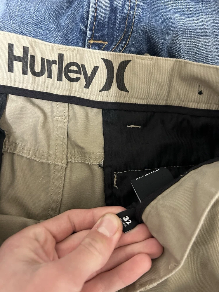Good condition. Volcom shorts size 30 and 32. Urban pipeline shorts 30W. Hurley shorts 32. Vans shorts 30. Lucky brand jeans 34x30. Levi’s pants 30x30. Dickies shorts 34.