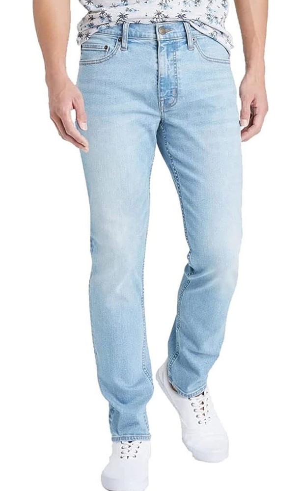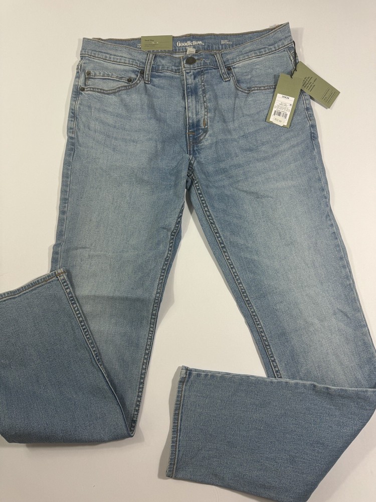 Elevate your style with these Goodfellow & Co Skinny Fit Jeans for Men in Light Blue. Featuring a 5-pocket design with zip and button closure, these jeans are made of 99% Cotton and 1% Lycra, making them comfortable and durable for any season. The mid-rise waist and slim fit offer a modern look, while the 34x34 inseam ensures the perfect length. These jeans are perfect for any occasion, whether it's a casual day out or a night on the town. Add these jeans to your wardrobe today and elevate your fashion game.