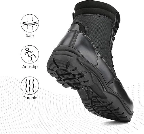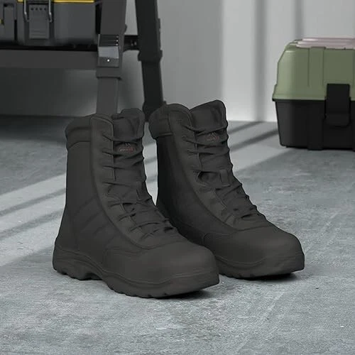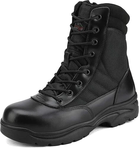 π οΈ Durable Protection for Tough Jobs : Crafted with premium leather and fabric, these NORTIV 8 Steel Toe Work Boots are built to last. Featuring a steel toe cap that meets ASTM 2413-18 standards, a puncture-resistant midsole, and a high-boot design, these boots provide full protection and excellent ankle support. π¬οΈ Breathable & Comfortable : Designed for all-day wear, the breathable fabric keeps your feet cool and dry. The removable, shock-absorbent cushioned insole ensures superior comfort, making these boots ideal for long workdays. π‘οΈ Slip-Resistant & Practical : With a slip, oil, and abrasion-resistant rubber outsole, these boots deliver outstanding traction on all terrains. Perfect for construction, welding, warehouse work, roofing, motorcycle riding, and more, theyβre the ultimate heavy-duty footwear. β‘ Convenient & Stylish : Featuring a YKK side zipper and lace-up closure, these boots are easy to put on and take off. The stylish design pairs functionality with a sleek, professional look, ensuring you stay protected without compromising style. π¦ Quality You Can Trust : Backed by a worry-free warranty and friendly customer service, NORTIV 8 is a trusted American brand dedicated to delivering high-quality outdoor and work footwear.