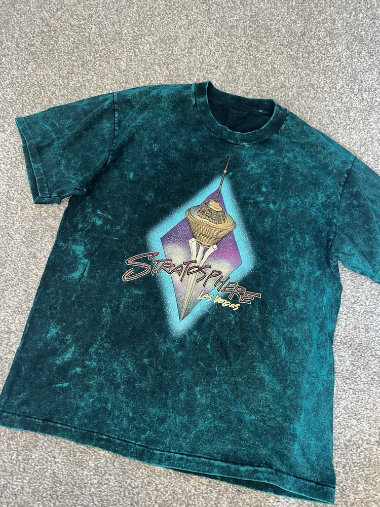 Elevate your casual wardrobe with the Stratosphere T-Shirt, tailored for comfort and style. This green, crew neck tee is a versatile addition to any ensemble, featuring a regular fit that's ideal for a relaxed look. Crafted from soft, breathable cotton, it's a go-to choice for those seeking both durability and ease. The T-shirt boasts a lightweight design, making it perfect for all seasons, from the warmth of summer to the chills of winter. Its short sleeves and collarless feature ensure a sleek silhouette, while the timeless design offers a subtle nod to streetwear culture, making it a staple piece for any Las Vegas enthusiast. NOTE: Pit to pit 22” Unsure of material etc, as tags are removed This item is used so please don’t expect perfection. May have minor marks and will need a good wash in my opinion. Generally in good used condition. Any Q’s please don’t hesitate to get in touch. I’d be super grateful if you could save me as a seller, you’ll receive regular updates and offers. Unfortunately I do not combine postage on auctions, purely as these are not always in the same location.. Thank you so much for your continued support.