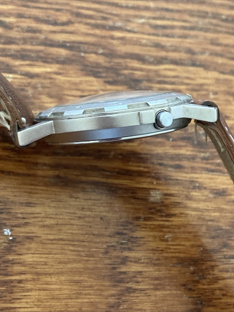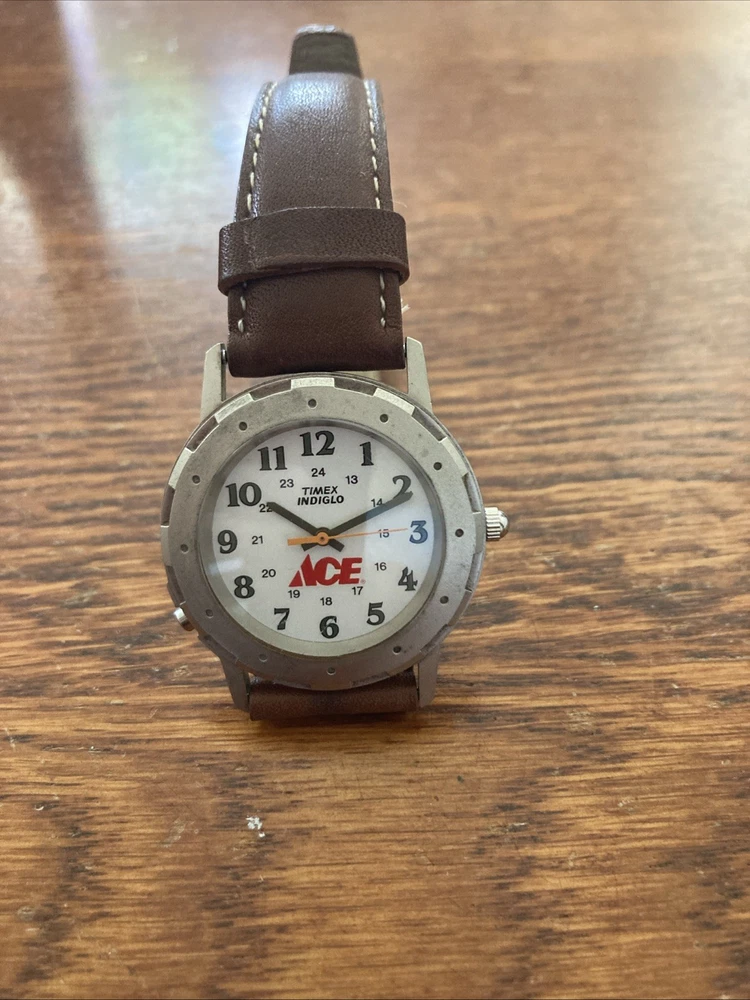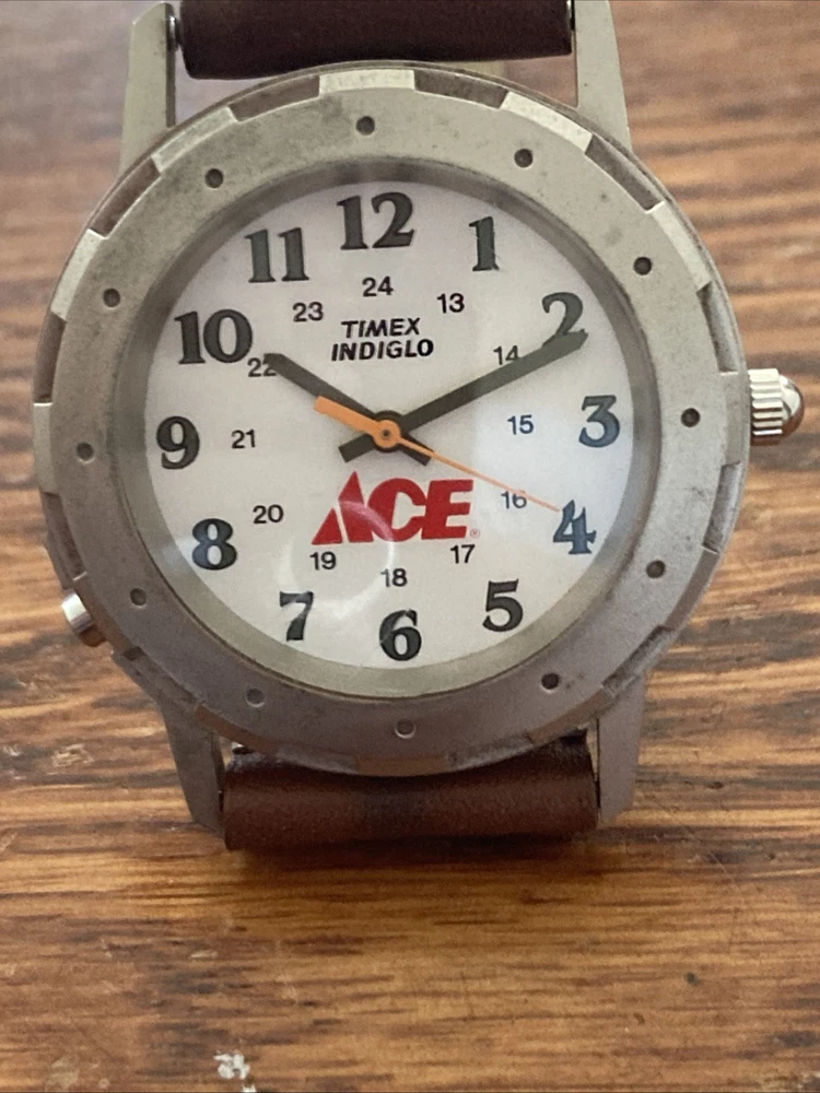 Watch is running and keeping time! The Indiglo function does not work. Watch has scratches, nicks and wear and tear marks on crystal, case, back and band! The watch is sold as is with no return! Please see photos!