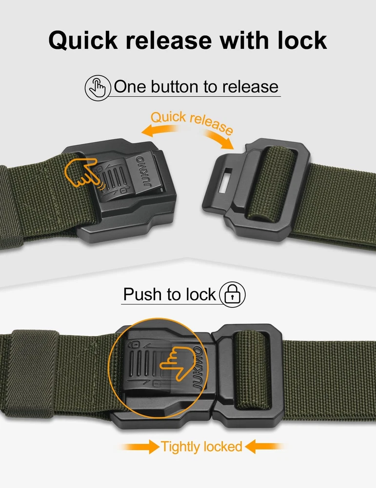 Description 8#ZS Tactical Belt with Lock, Military Work 1.5" Stretch Nylon Web Hiking Quick Release Belt with Heavy Duty Seatbelt Buckle. is a brand that is extremely detail-oriented focusing on men's belts. In order to ensure that our men’s belts meet the expectations of every customer, every detail of product quality is strictly checked by our staffs. We have only one goal that is to make every customer feel that they make every penny count and that the product is worth owning, which is our responsibility. QUICK RELEASE BUCKLE WITH LOCK:The crafted heavy-duty buckle is made of zinc alloy. As long as you push the button on the buckle, the buckle would release instantly. It is super convenient to release your pants for doing whatever you want to do. You would never meet a belt so quick convenient like this. In addition, has upgraded the safety design of the buckle. You only need to gently push the buckle lock to Completely prevent the buckle from suddenly release HIGH QULITY STRETCH NYLON:We intent to make the strap be stretch. The strap is made by special stretch material which is more solid than regular belt. More than that, it is very sturdy as well as stretch, which make your waist be more comfortable as well as stay tight, when you take large range of activities. Anyone who do physical activities for a long period of hours will get a great use out of the tactical belt FOR SPECIAL YOU: Our solid belt suits for military, SWAT, police , fire fighters, work, rigger, sport and other tactical users. Anyone who need to take any activity such as fishing and camping will be in harmony with the belt AS A PRESENT: Our elaborate belt is enclosed in an elegant gift box for you giving whoever you love, or yourself SHOPPING GUARANTEE:If you meet any problems after purchasing the belt, please don't hesitate to contact us. We promise to provide you 100% satisfying guarantee