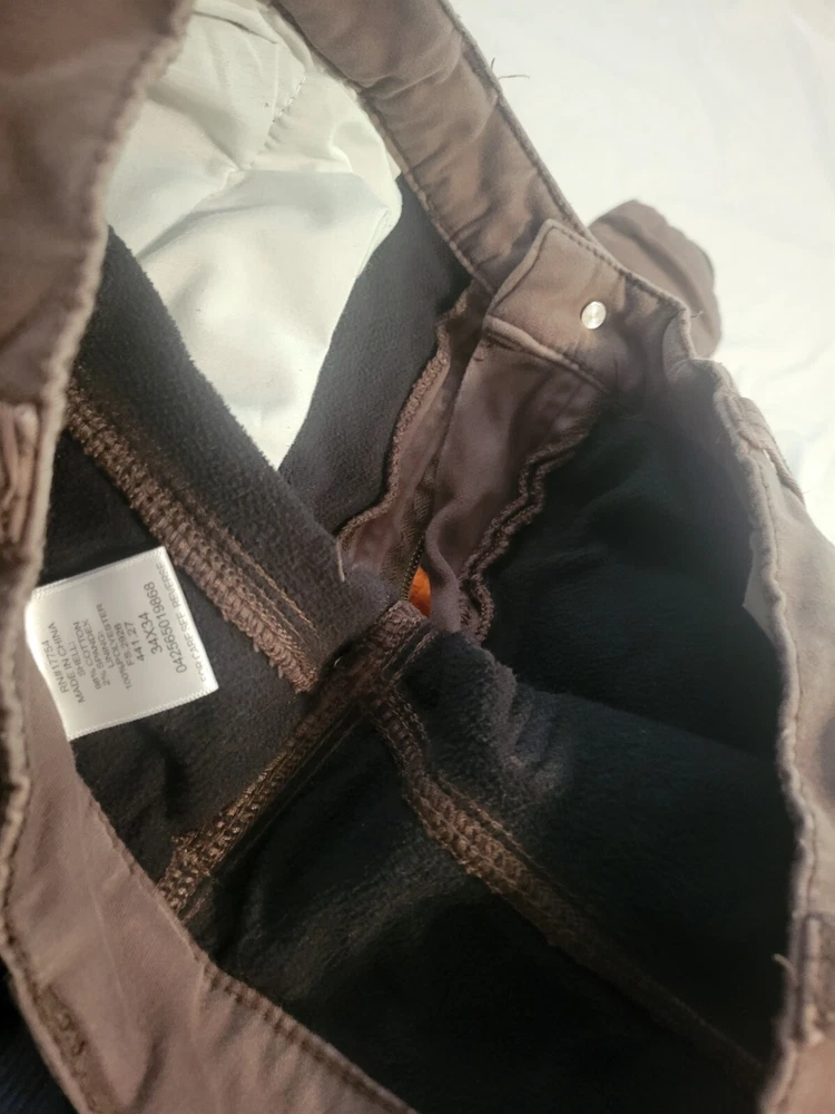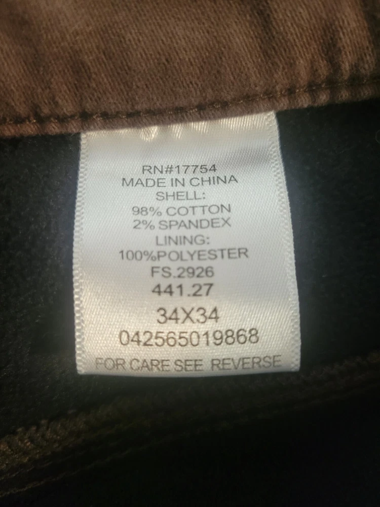 Introducing these stylish and functional men's work pants in a classic brown color. These pants are made of a high-quality cotton blend material with a canvas fabric type, ensuring durability and comfort throughout the day. The pants feature a solid pattern and a straight leg style, with a flat front design and button closure for easy wear. These pants are perfect for workwear occasions and come in a regular fit, with a waist size of 34 inches and an inseam of 34 inches. They also include thermal accents for added warmth and comfort. The pants are part of the work product line and are ideal for any man looking for a reliable and stylish pair of work pants.