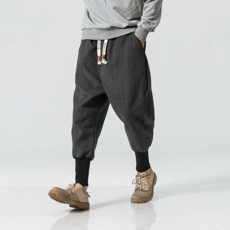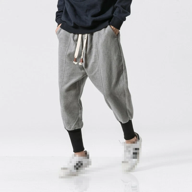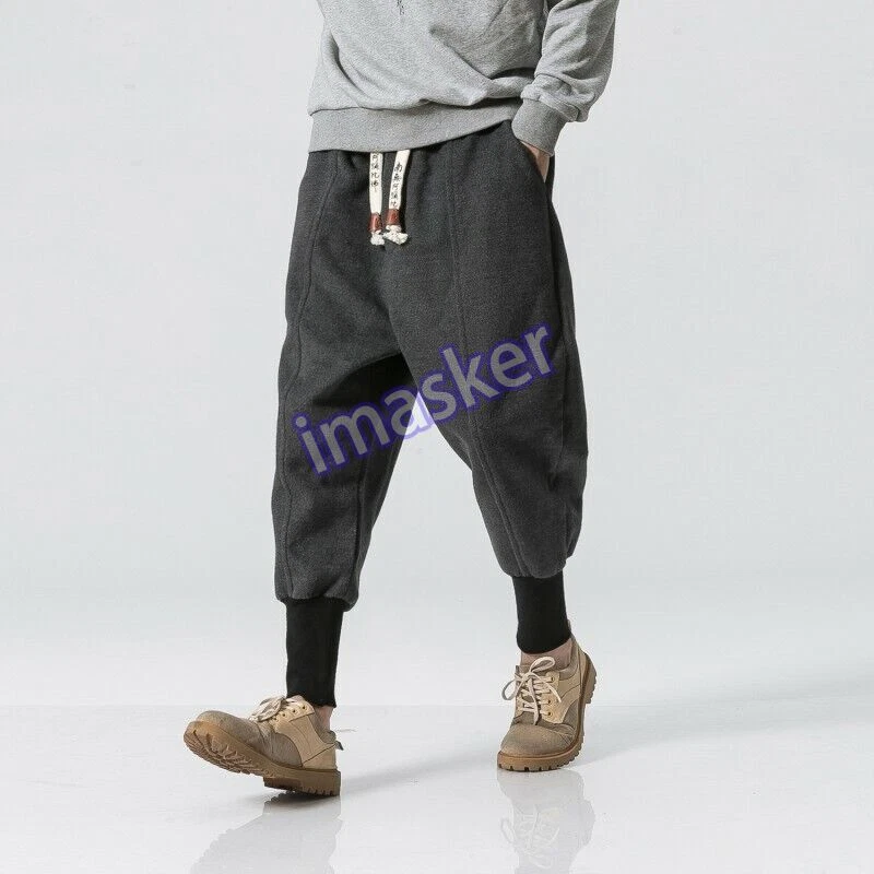Men's Thick Winter Wool Harem Pants Casual Cotton Trousers for Party