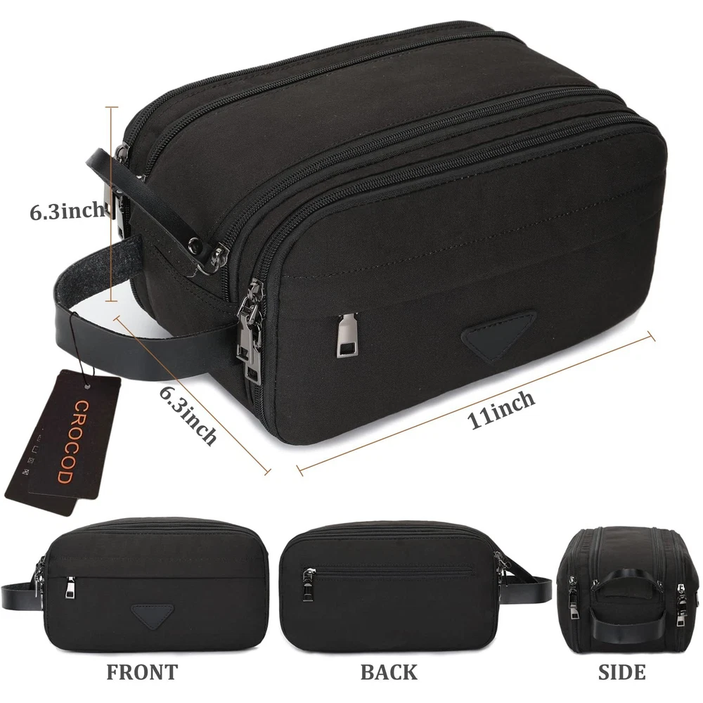 CROCOD Mens Toiletry Bag Travel Leather Toiletry Organizer Dopp Kit for Men Water-resistant Shaving Bag for Bathroom (Black) ★【Excellent Quality】: The toiletry bag is made from water-resistant oxford with polyester inner layer. It is easy to clean and water-resistant, lightweight and durable, the perfect combination for traveling.Soft sponge padding keeps your toiletries and cosmetics well protected.Comfortable leather carry handle allows for easy transport and high quality zipper makes it easy to zip and unzip. ★【Large Capacity】: Spacious main compartment hold bottles upright. Multiple pockets inside, can hold all your toiletries and shaving supplies organized. Dimension: 11" x 6.3" x 6.3"(L*W*H).A great size to store in a duffel bag/Travel Weekend Bag/Overnight bag. ★【Double Zipper Design】: This durable toiletry bag features a unique double zipper design, which allows for easy access to its inner contents. Simply pull on the connected zip puller for full exposure. ★【Perfect Organizer】: This mens toiletry organizer perfect for keeping your personal toiletries and cosmetics organized for that short weekend trip or longer vacation. Travel just got easier with this lightweight and portable dopp kit. ★【Multi Function】: The toiletry bag is well made multi-function bag that can be used as shaving kit, makeup bag/cosmetic bag, Travel Storage Organizer,bathroom bag and more. Suitable for both home and travel use. SHIPPING Domestic Buyers - We have confidence in our products, but if you are not fully satisfied please contact us within 30 days of purchase and you will get full refund. - We ship within 3 business days of payment, usually sooner - We offer FREE shipping on all orders! - We only ship to the lower 48 states, no APO/FPO addresses or PO Boxes allowed International buyers – please note: Import duties, taxes, and charges aren't included in the item price or postage cost. These charges are the buyer's responsibility. - Please check with your country's customs office to determine what these additional costs will be prior to bidding or buying. * Order Cancellation Policy ** You can return a product for up to 30 days from the date you purchased it. 1. The seller reserves the right to cancel the special case only due to eBay cancellation fee. 2. The decision of seller is the final. 3. The seller will respond to the cancellation request within 2 business days. Please wait for the result of cancellation. 4. In case the cancellation is not completed by some reasons, the buyer can follow the options below to get the refund. 4.1 The buyer can reject the item when it arrives. 4.2 The buyer can send the item back to the seller within 30 days If the buyer receives item (USA Shipment ONLY). The seller will provide the FREE return label to the buyer when the buyer opens " Return Item" case on eBay by using the reason as "Change my mind" ONLY. 5. When buyer has placed the order. The order will be processed and completed by automatic warehouse system within 5 minutes. In case that buyer sends the cancellation request after 5 minutes of placing the order, the request will be rejected. **Sending direct message to cancel the order is not allowed for every case.* Return Policy For the return case - If buyer would like to return the items for refund or replacement, please CONTACT SELLER to receive the free return label from seller. The refund or replacement will be processed with the tracking number of return label which is provided by seller only. The other ways of return which are not approved by seller will not be processed for the refund or replacement.