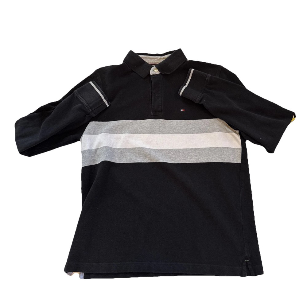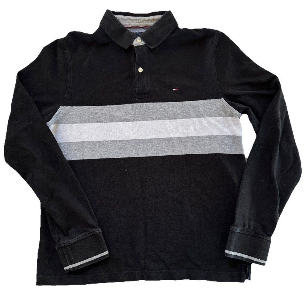 Crafted with the classic style and comfort that the brand is known for, this men's polo by Tommy Hilfiger features a timeless striped pattern. The regular fit design ensures a flattering silhouette for everyday wear, while the long sleeves add a touch of sophistication to your ensemble. In a versatile medium size, the shirt boasts a crisp green hue that pairs effortlessly with a variety of bottoms. The fabric is meticulously washed to achieve a medium level, enhancing both the look and feel of the shirt. Whether for casual outings or smart-casual events, this polo is an exemplary addition to your wardrobe.