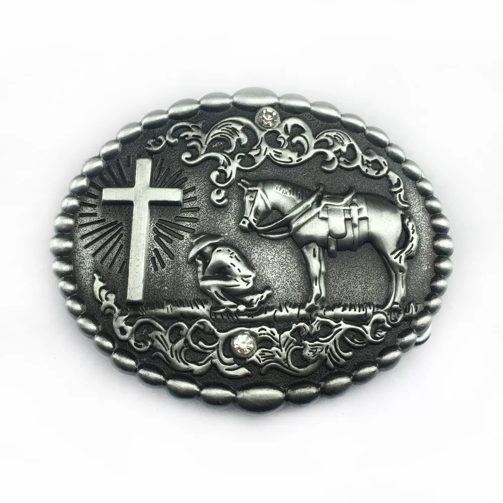 Men's Western Cowboy Belt Buckle Large Rodeo Casual Wear Cross Prayer Horse Oval
