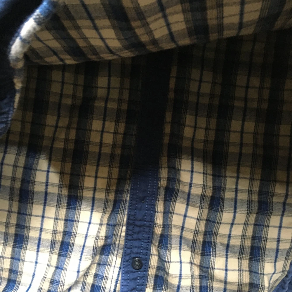 $ 10.48M&S Linen Mix Shirt Mens Extra Large Button Up Long Sleeve Blue Check (XL)