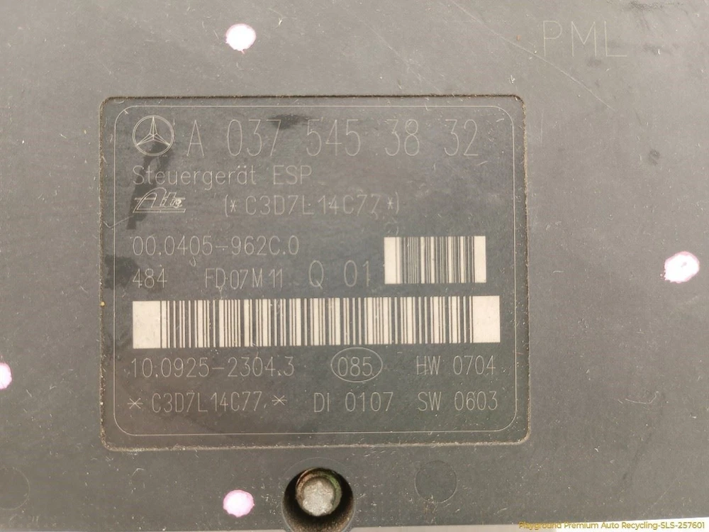 Welcome to Playground - Premium Auto Recycling Feedback [ Add to Favorite Seller me Our eBay STORE New Arrivals All Items Contact Us Most ITEMS SHIPPED WITHIN 2 Business Days Trusted Store customer service is our top priority Product information Mercedes SLK280 SLK350 R171 ABS Anti Lock Brake Pump Actuator Fits 2006-2009 06 Review photos this is your actual part Donor Vehicle: Model: SLK280 Year: 2008 Miles: 61000 - 0=N/A or Unknown Stock #: 257601 Video: Go to YouTube and search for: "Playground PAR 257601" Part Detail: Part Placement: Options/Color: Convertible,R171,Auto,RWD Description: ABS Pump A 037 545 38 32 06740822832573 00.0405-962C.0 Inventory ID: 88521 Description ABS Pump A 037 545 38 32 06740822832573 00.0405-962C.0 This part will fit these makes and models with these options MERCEDES C-CLASS 06 203 Type, Assembly; (Sdn), C55, module ID 0365454232 MERCEDES C-CLASS 06-07 203 Type, Assembly; (Sdn), C230, module ID 0365454232 MERCEDES C-CLASS 06-07 203 Type, Assembly; (Sdn), C280, RWD, module ID 0365454232 MERCEDES C-CLASS 06-07 203 Type, Assembly; (Sdn), C350, RWD, module ID 0365454232 MERCEDES C-CLASS 07 203 Type, Assembly; (Sdn), C230, module ID 0365400201 MERCEDES C-CLASS 07 203 Type, Assembly; (Sdn), C280, RWD, module ID 0365400201 MERCEDES C-CLASS 07 203 Type, Assembly; (Sdn), C350, RWD, module ID 0365400201 MERCEDES CLK 06 209 Type, Assembly; CLK500, module ID 0365400201 MERCEDES CLK 06 209 Type, Assembly; CLK55, module ID 0365400201 MERCEDES CLK 06-09 209 Type, Assembly; CLK350, module ID 0365400201 MERCEDES CLK 07-09 209 Type, Assembly; CLK350, module ID 0365400401 MERCEDES CLK 07-09 209 Type, Assembly; CLK350, module ID 0365454232 MERCEDES CLK 07-09 209 Type, Assembly; CLK550, module ID 0365400201 MERCEDES CLK 07-09 209 Type, Assembly; CLK550, module ID 0365400401 MERCEDES CLK 07-09 209 Type, Assembly; CLK550, module ID 0365454232 MERCEDES CLK 07-09 209 Type, Assembly; CLK63, module ID 0365400201 MERCEDES CLK 07-09 209 Type, Assembly; CLK63, module ID 0365454232 MERCEDES SLK 05-07 171 Type, Assembly; SLK350, module ID 0365400401 MERCEDES SLK 05-07 171 Type, Assembly; SLK55, module ID 0365400401 MERCEDES SLK 06-07 171 Type, Assembly; SLK280, module ID 0365400401 MERCEDES SLK 06-08 171 Type, Assembly; SLK280, module ID 0365454232 MERCEDES SLK 06-08 171 Type, Assembly; SLK350, module ID 0365454232 MERCEDES SLK 06-08 171 Type, Assembly; SLK55, module ID 0365454232 MERCEDES SLK 08 171 Type, Assembly; SLK280, module ID 0365400201 MERCEDES SLK 08 171 Type, Assembly; SLK280, module ID 0375453832 MERCEDES SLK 08 171 Type, Assembly; SLK350, module ID 0365400201 MERCEDES SLK 08 171 Type, Assembly; SLK350, module ID 0375453832 MERCEDES SLK 08 171 Type, Assembly; SLK55, module ID 0365400201 MERCEDES SLK 08 171 Type, Assembly; SLK55, module ID 0375453832 Shipping Playground PAR, LLC ships to US addresses within the continental 48 states. Shipping to Alaska, Hawaii, Puerto Rico, APO, FPO or PO Box addresses and International is available for select parts only. Please contact us through eBay messaging for details and shipping rates for other items. Local Pick-up at our facilities is available. Please contact us prior to your purchase to arrange local pick-up. Please allow up to 10 days for delivery unless your part is included in eBay's Guaranteed Delivery Program. Most areas in the US are within 5 days. If an item arrives damaged, please contact us via eBay messaging within 24 hours for assistance. Warranty Return Policy All parts we sell come with a 3 0 Day Money Back Guarantee unless otherwise stated. The 30 day period starts when the item is delivered. Please contact us through eBay messaging for a Return Merchandise Authorization Number (RMA) before returning any part. We do not cover the cost of labor charges during the installation of your parts. All original shipping costs are non-refundable. Parts must be returned in the same condition as when you received the part. Buyer is responsible for all return shipping costs. Please use the Contact Seller feature if you have questions. Warranty All of our parts (except AS-IS and PARTS ONLY parts) are covered under 60 day warranty. Our warranty policy is below: 60 days starts as of the date of purchase. All requirements of our return policy are part of our warranty policy. This includes the purchaser paying for return shipping. There are no reimbursements for labor, diagnostics, towing, car rental, lost wages, programming or reprogramming. The warranty is for the original purchaser only and is not transferable or assignable. This warranty only covers when parts are used in normal driving conditions and does not cover accidents, abuse, neglect, improper installation, improper maintenance, off-road or use outside of the proper vehicle. Playground may choose to repair, replace or refund the part based on available stock at our discretion. Playground reserves the right to use a repair facility of its choosing to diagnose or perform a warranty claim repair. Parts are not covered for external fluid leaks. We recommend that seals and gaskets be replaced as part of the repair process. Proof of proper lubrication and refilling of components is a requirement for warranty claims. Many electronic modules and components require programming. This process must be followed or the part may not operate correctly, or may be damaged. Proof of programming is required for a warranty claim. Major components are stamped and may have heat sensitive tabs attached to indicated overheating that would void warranty. Warranty covers the base component and none of the other attached parts. We are selling the single part and other parts left attached are there for possible convenience or to protect the part we are selling. These extra attached parts are not covered by any warranty. At no time will the warranty claim ever exceed the original purchase price of the part. Payment Playground PAR, LLC only accepts Ebay Managed Payments for items in our eBay Store. Sales t
